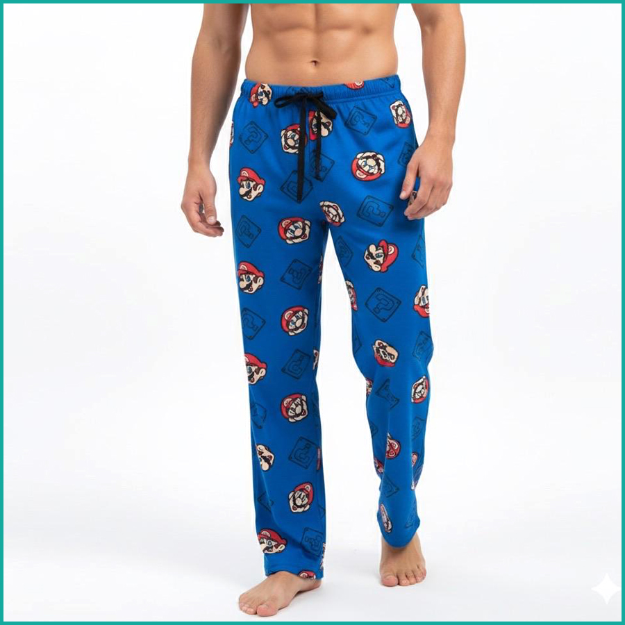 Mario Face Men’s Cotton Pant – Blue