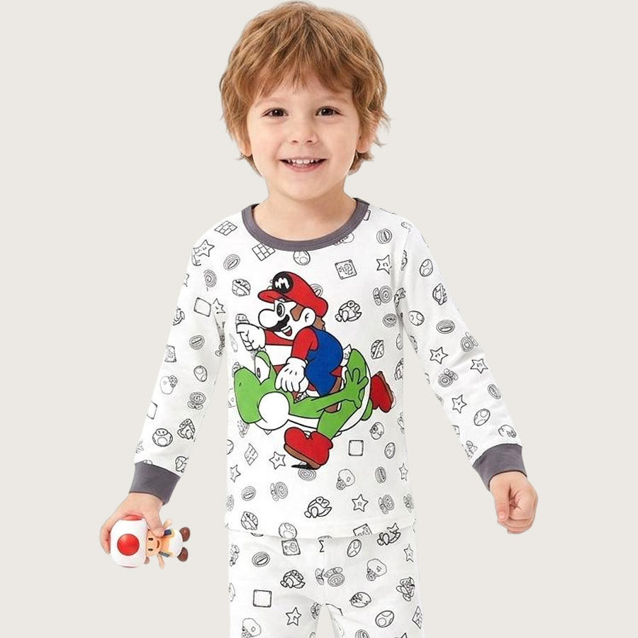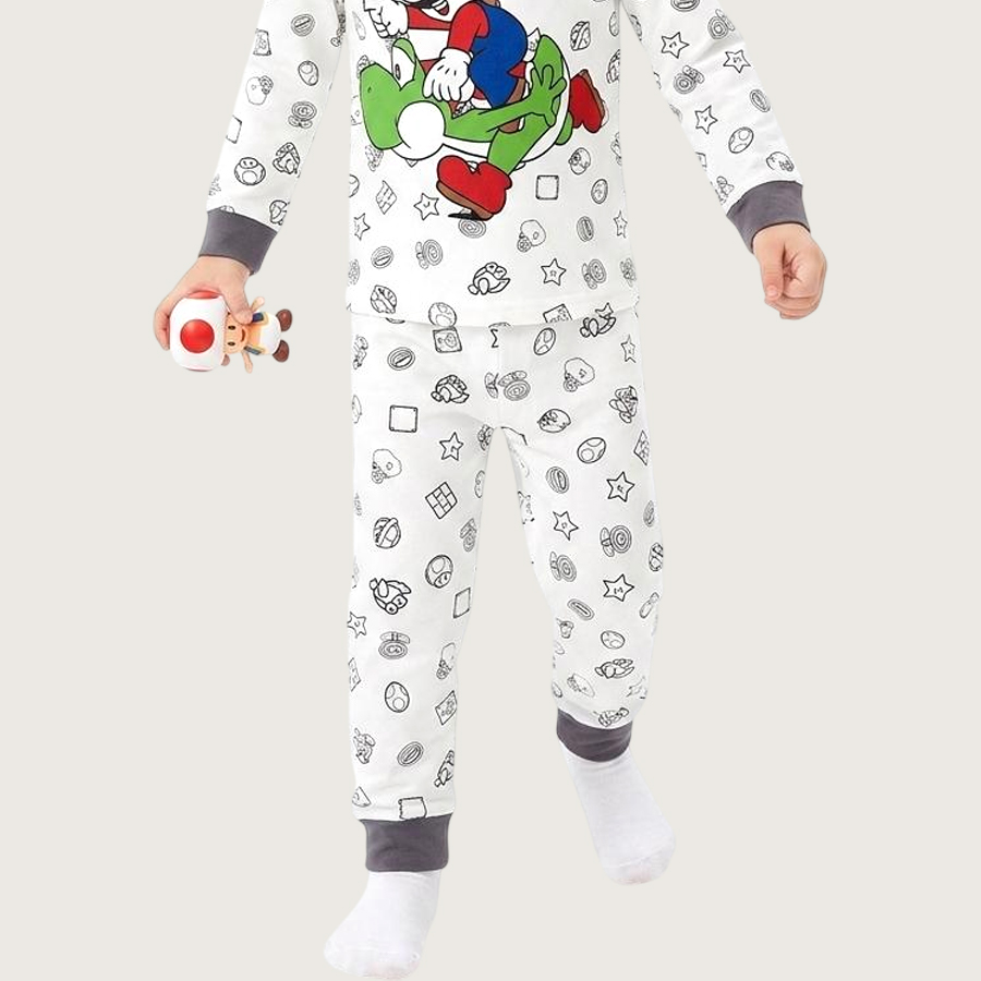Mario Kart Boys Full Sleeves Pajama Set KHAFIF – White