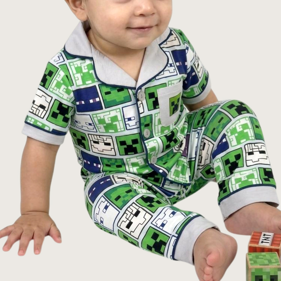 Minecraft Infant Boys Front Open Pajama Set – Green