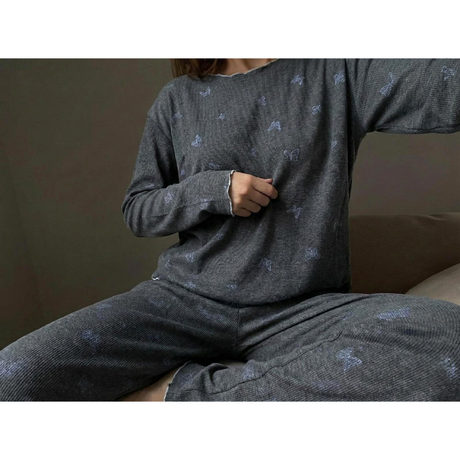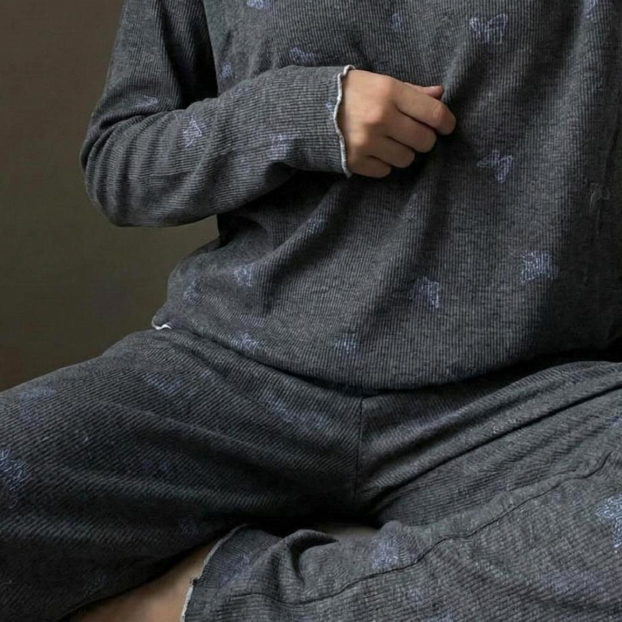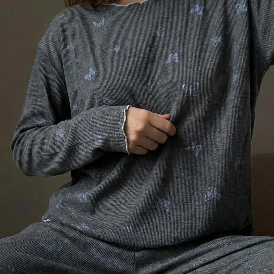 Mini Butterfly Ladies Cotton Loungewear Set – Grey