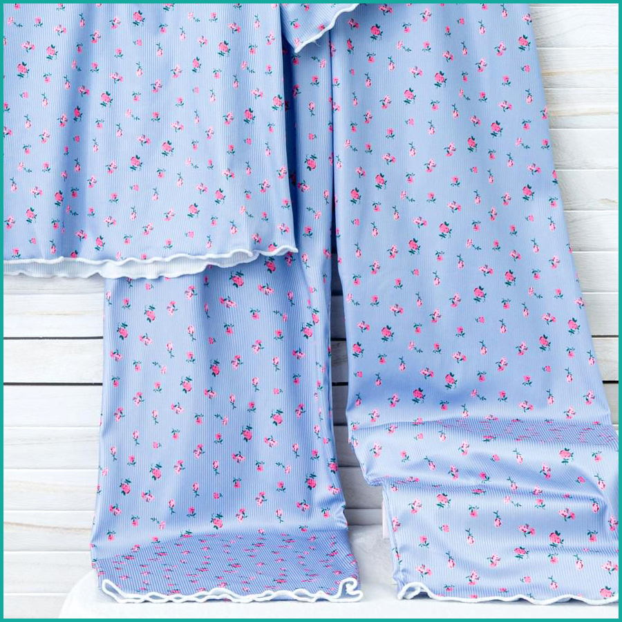 Mini Floral Ladies Loungewear Pajama Set – Sky Blue