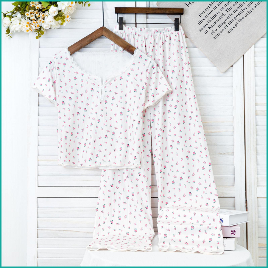 Mini Floral Ladies Loungewear Pajama Set - Pink