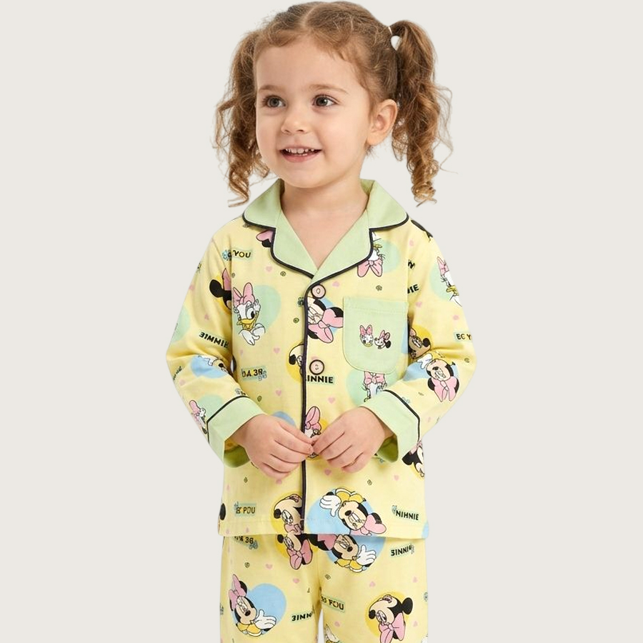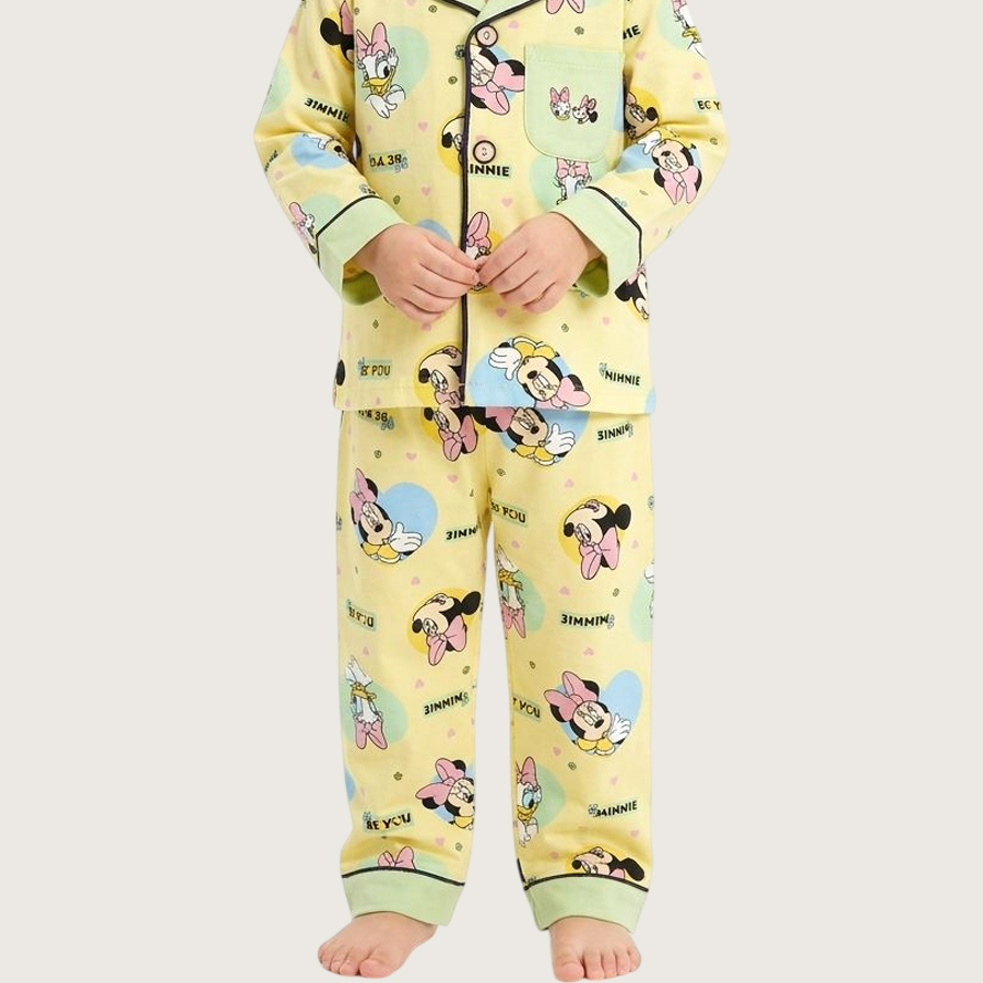 Minnie Girls Front Open Full Sleeves Pajama Set – Yellow