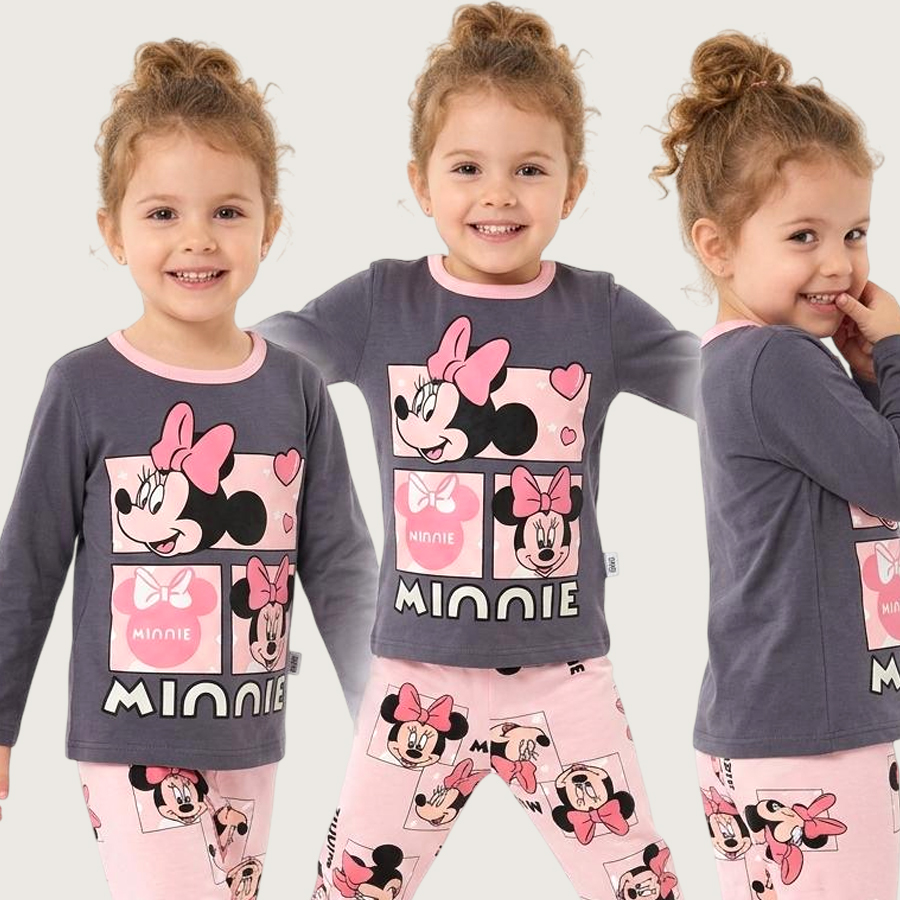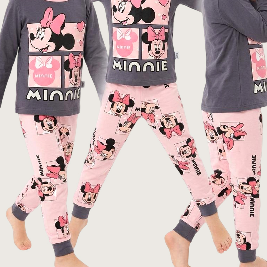 Minnie Love Girls Full Sleeves Pajama Set – Grey Pink