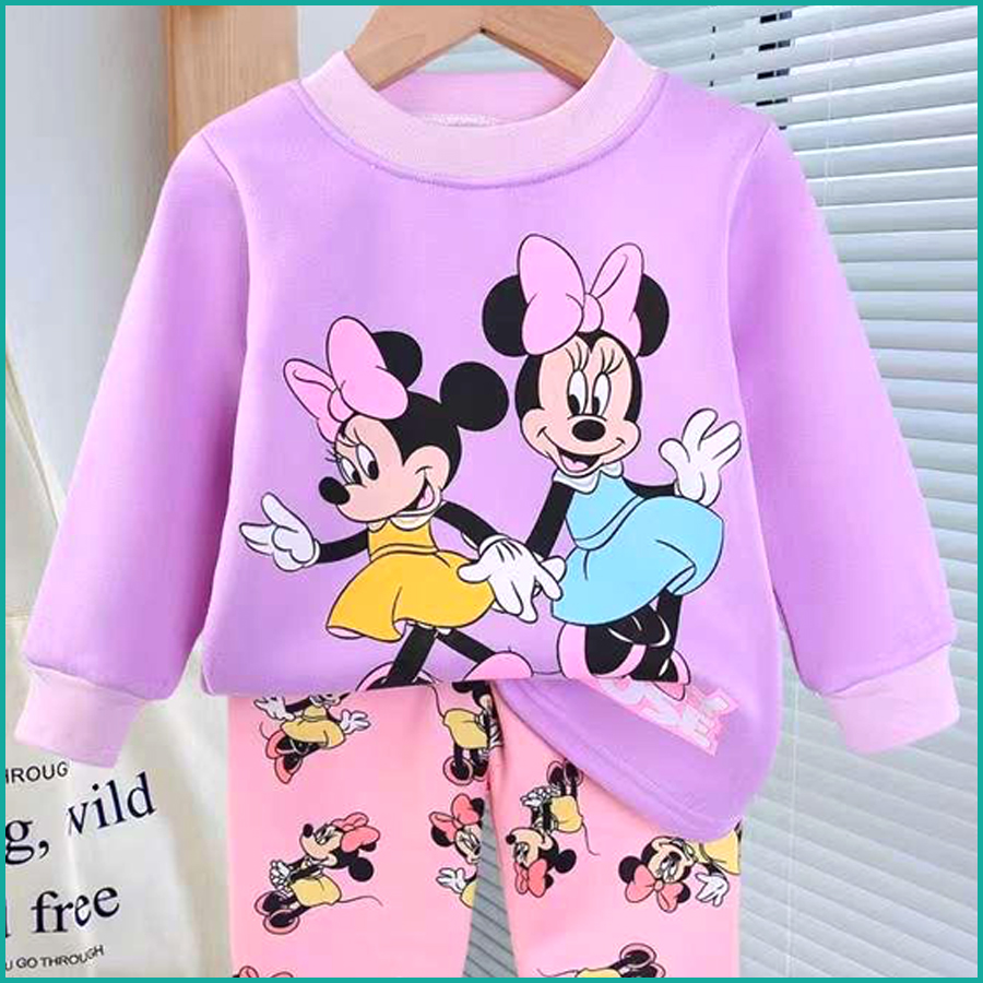 Minnie Mouse Kids Winter Pajama Set – Purple Pink