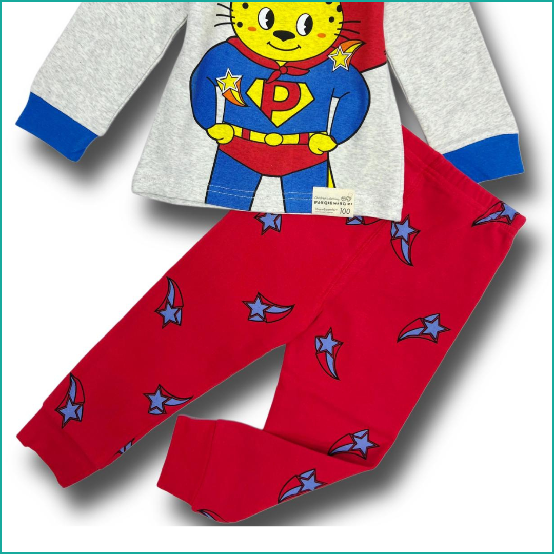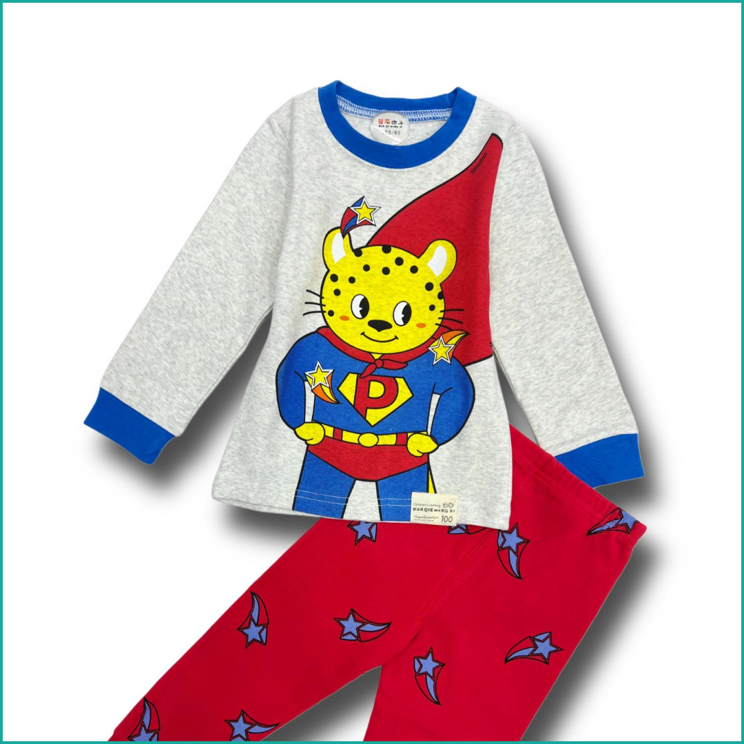 Panda Hero Full Sleeves Cotton Pajama set – Blue red