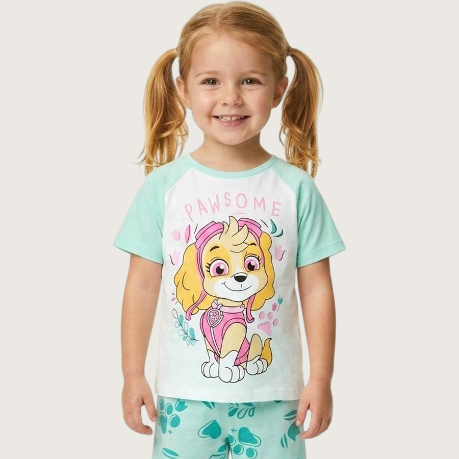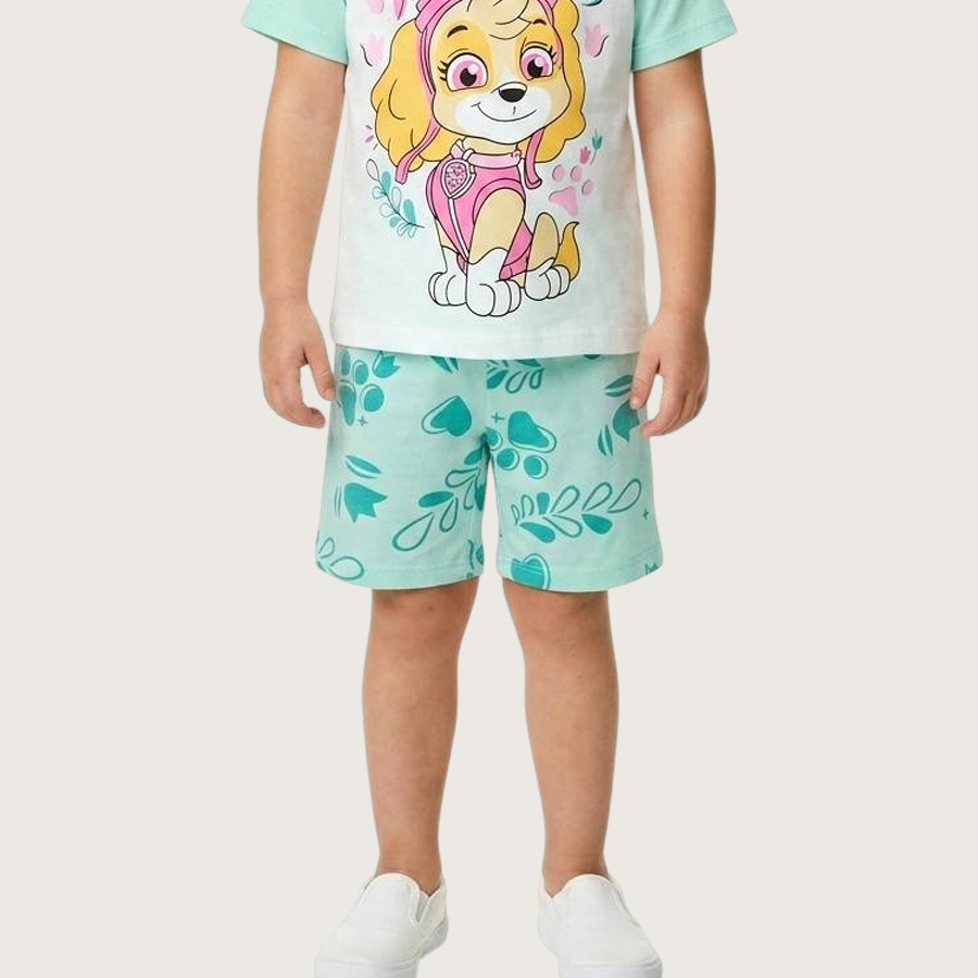 Pawsome Girls Summer Shorts Set – Green