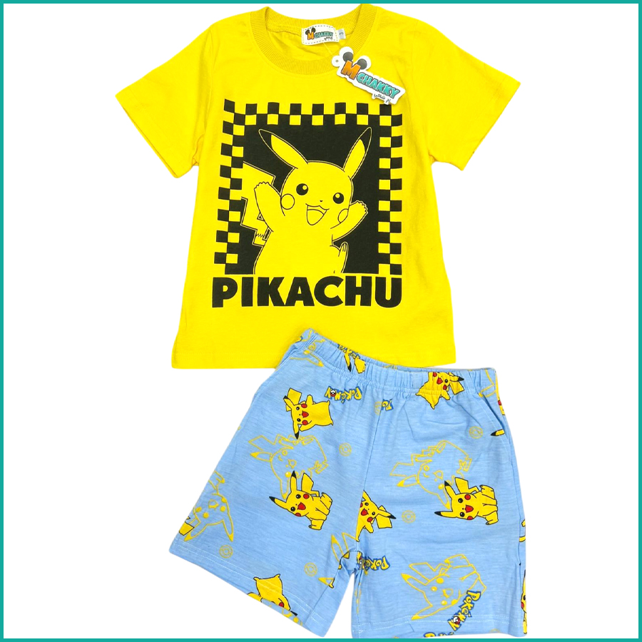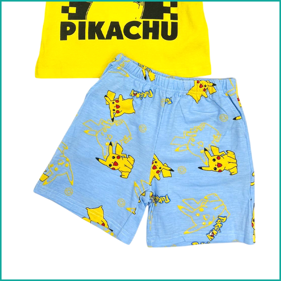 Pikachu Boys Cotton Shorts Set – Yellow Blue
