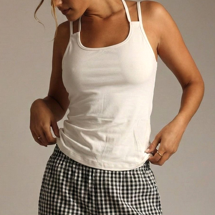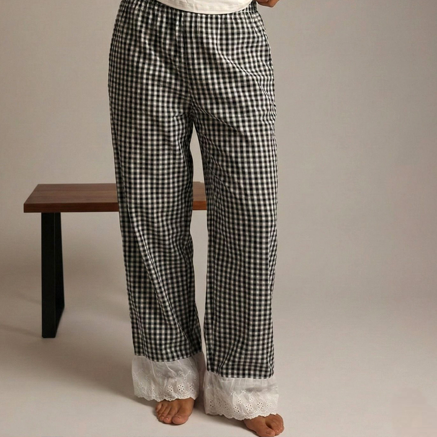 Plain Checks Ladies Loungewear Set – White Black