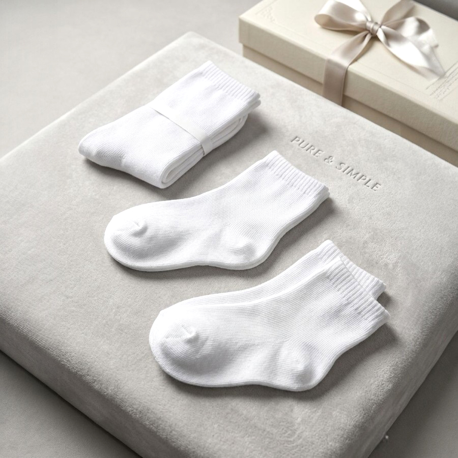 Plain Kids Socks 3 Pcs Set LONG – White