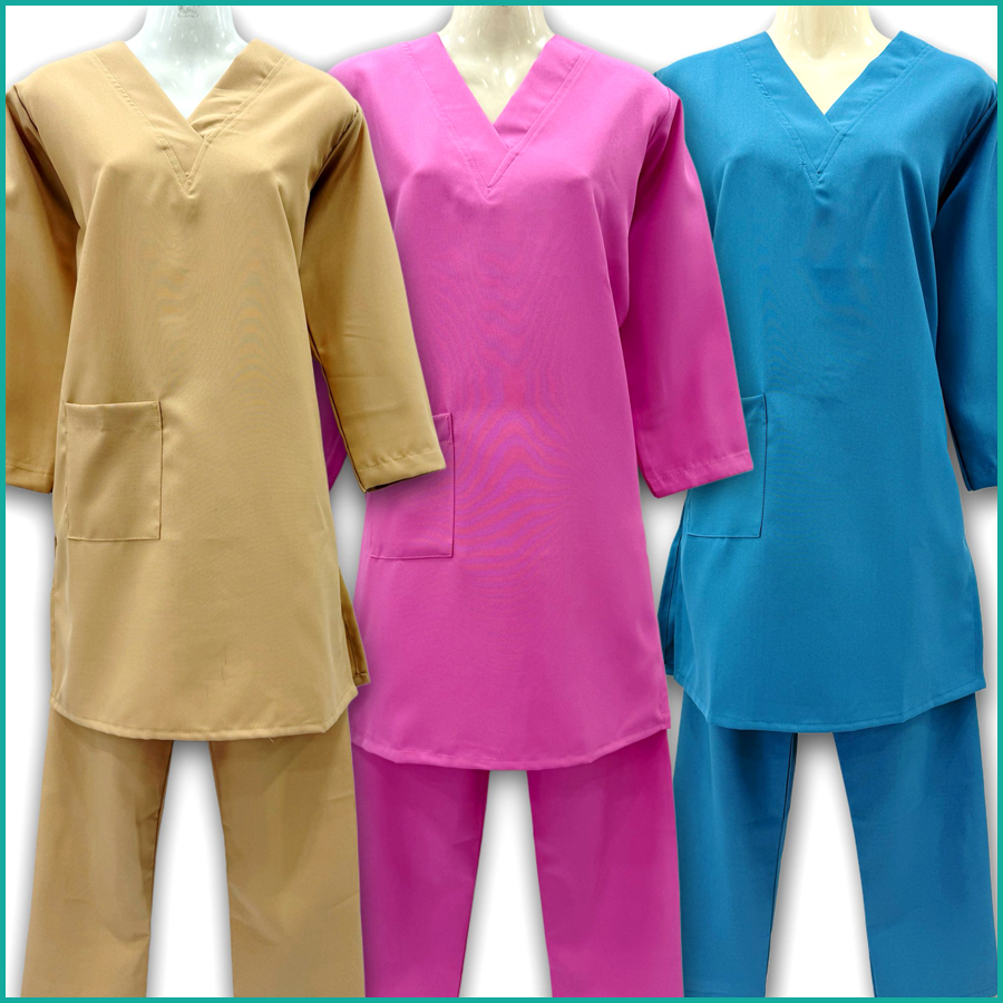 Plain Maid Uniforms Kreb Full Sleeves Punjabi يونيفورم كريب – Blue Brown Pink