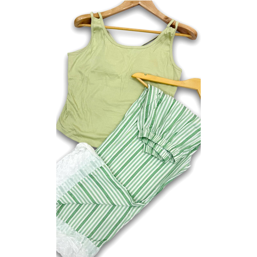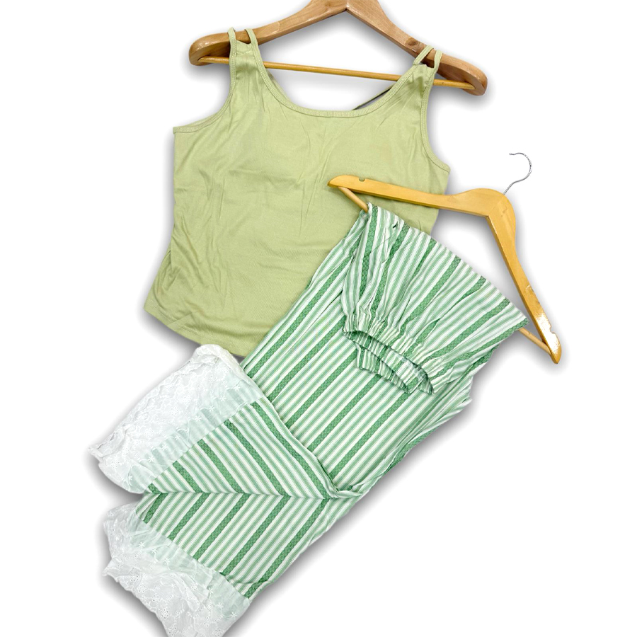 Plain Strips Ladies Cotton Loungewear Set – Green