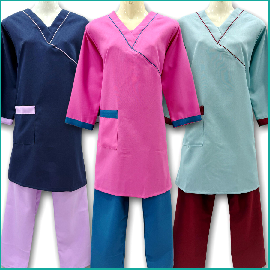 Plain Maid Uniforms Kreb Full Sleeves Punjabi يونيفورم كريب - Blue Brown Pink