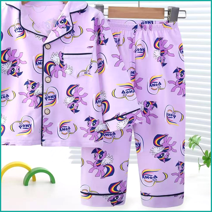 Pony Girls Front Open Full Sleeves Pajama Set – Purple