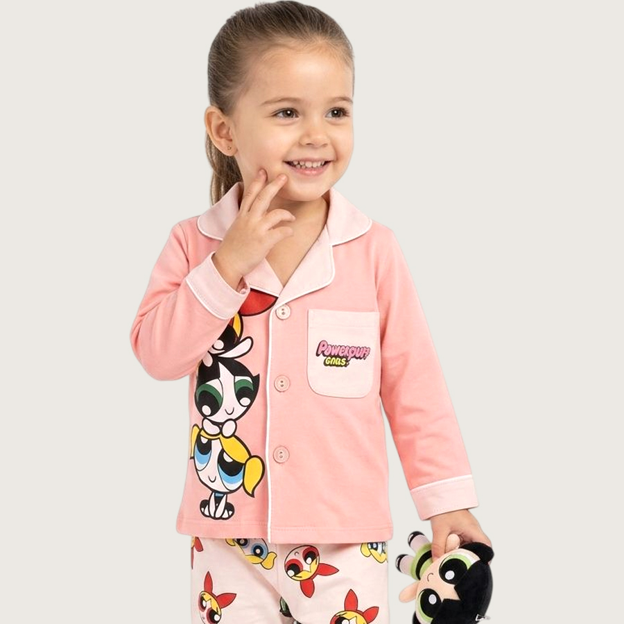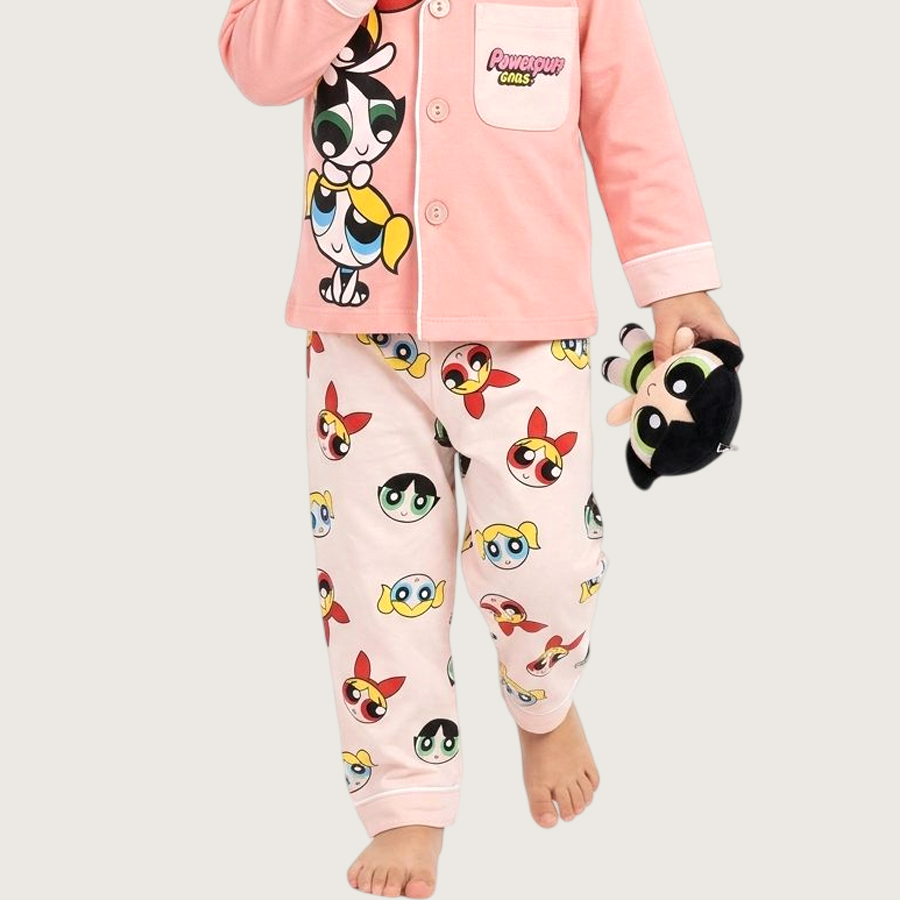 Powerpuff Girls Front Open Full Sleeves Pajama Set – Pink