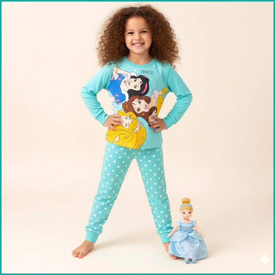 Princess Girls Full Sleeves Pajama Set PRIMARK – Sky Blue