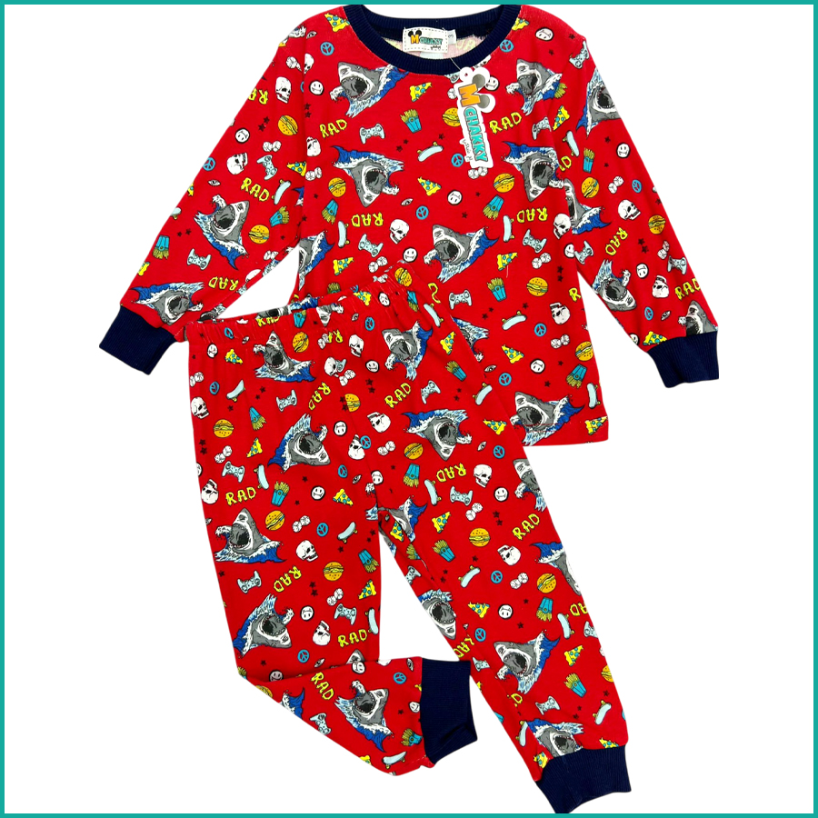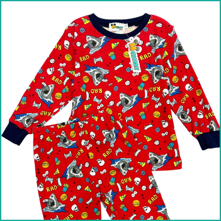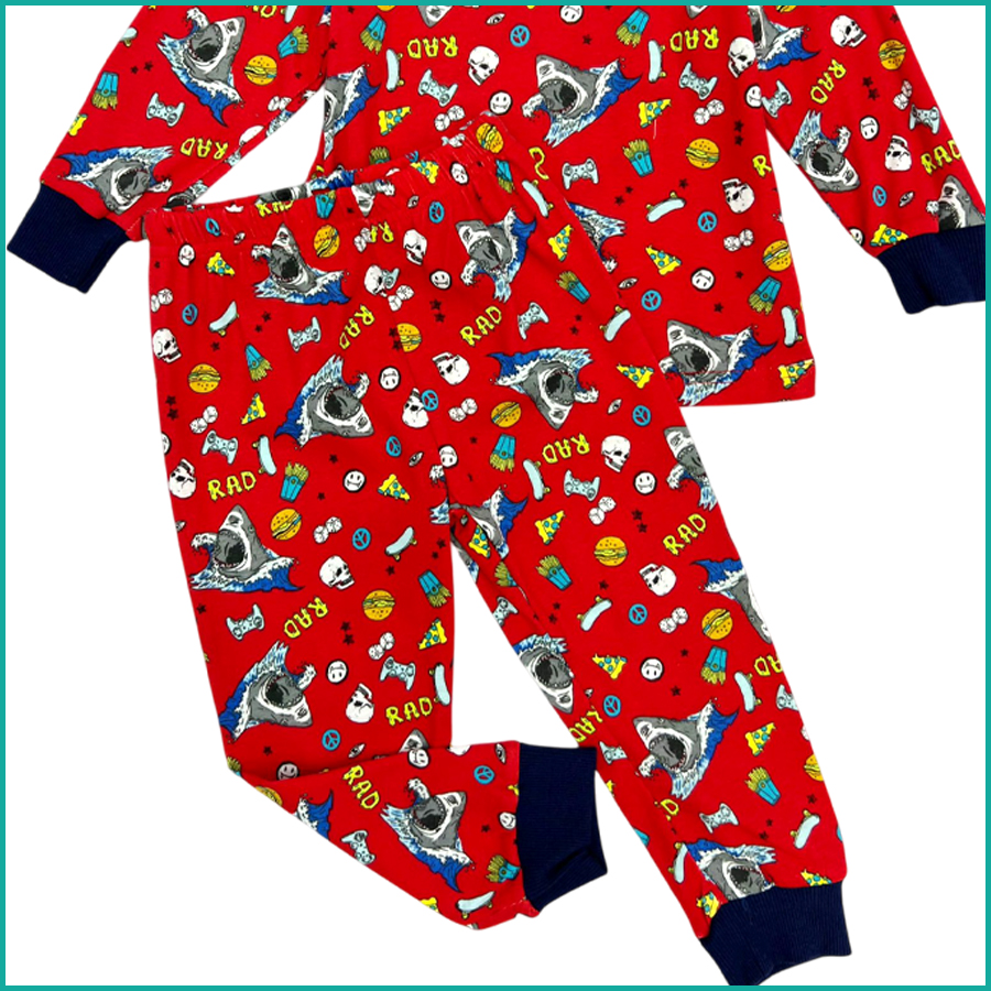 Scary Sharks Kids Cotton Pajama Set – Red