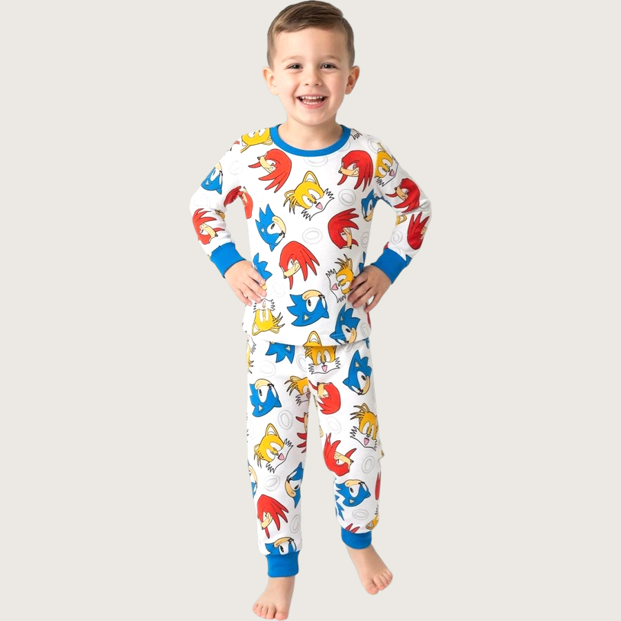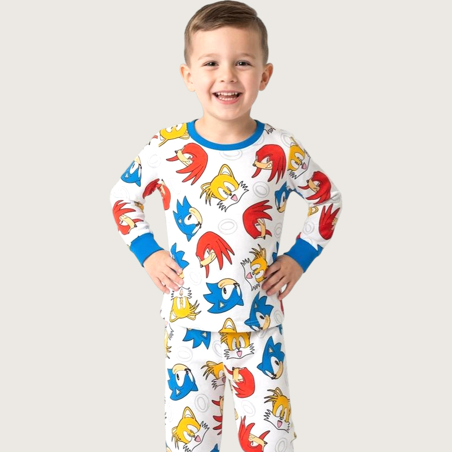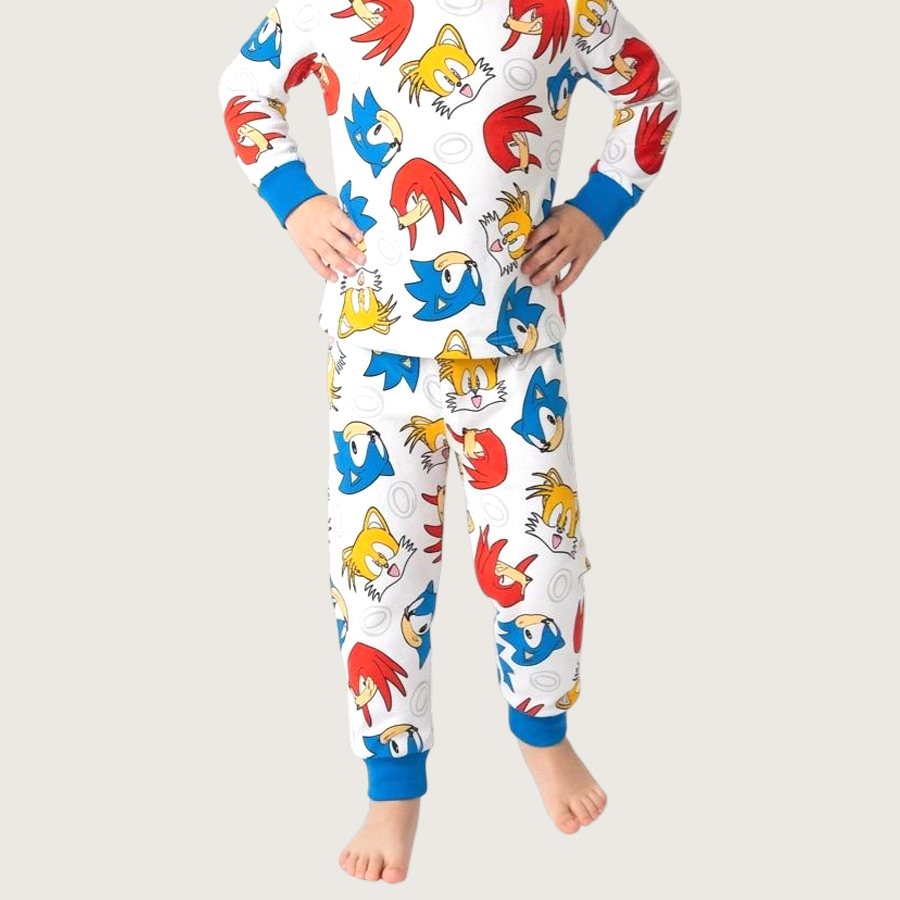 Sonic Ring Boys Full Sleeves Pajama Set MCHAKKY – White