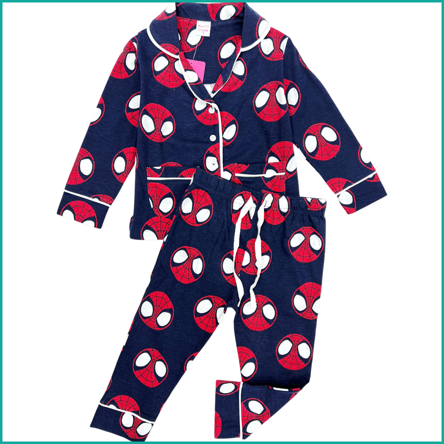 Spiderman Boys Front Open Full Sleeves Pajama Set – Navy