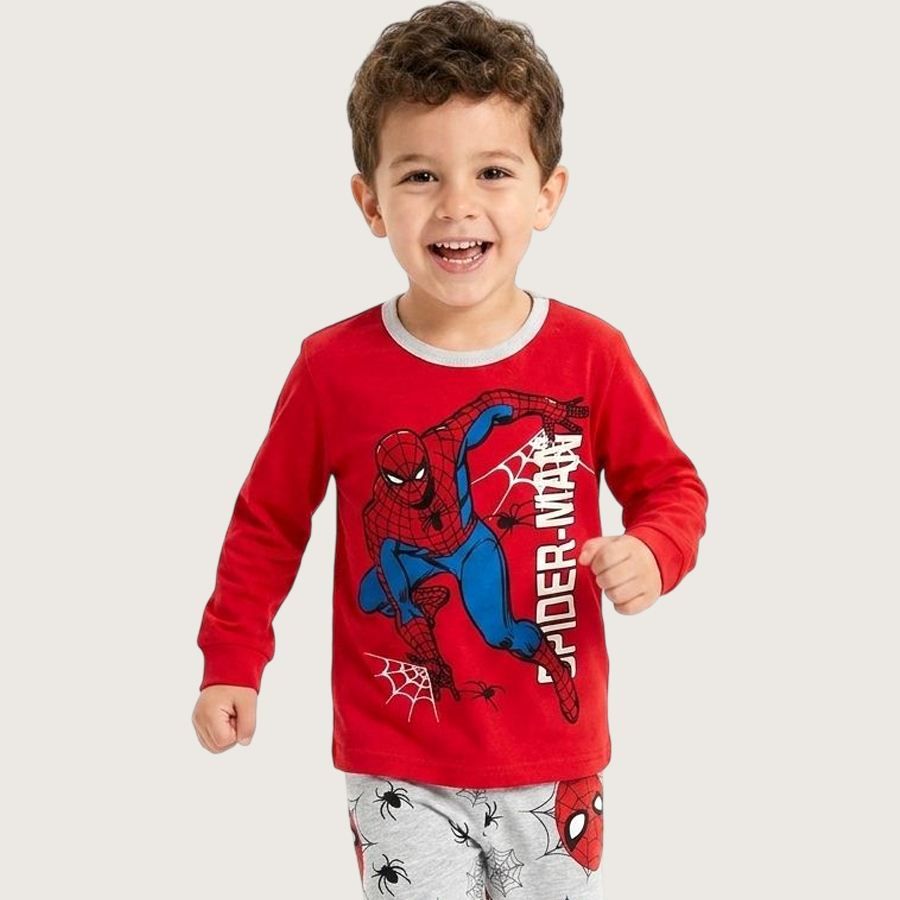 Spiderman Boys Full Sleeves Pajama Set – Red Grey