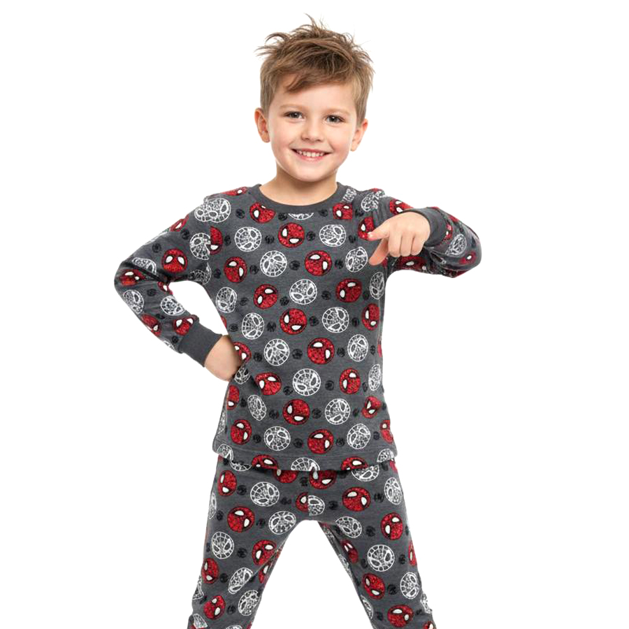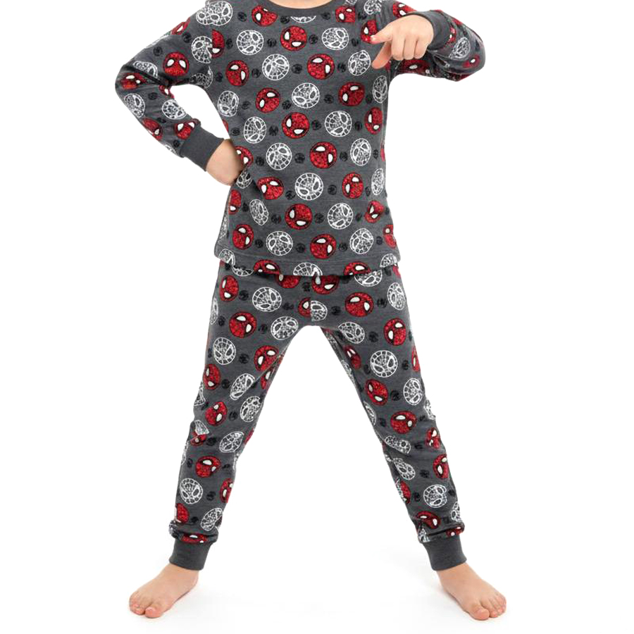 Spiderman Face Boys Cotton Pajama Set – Grey