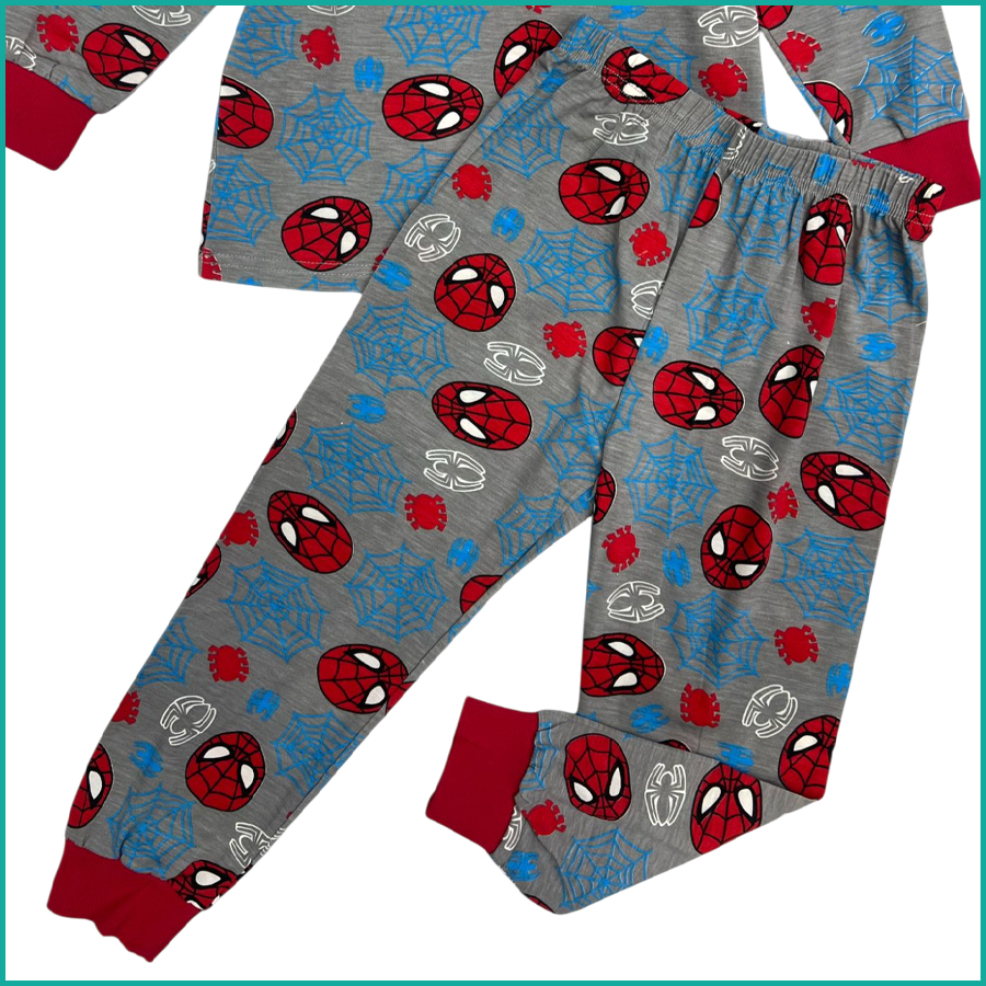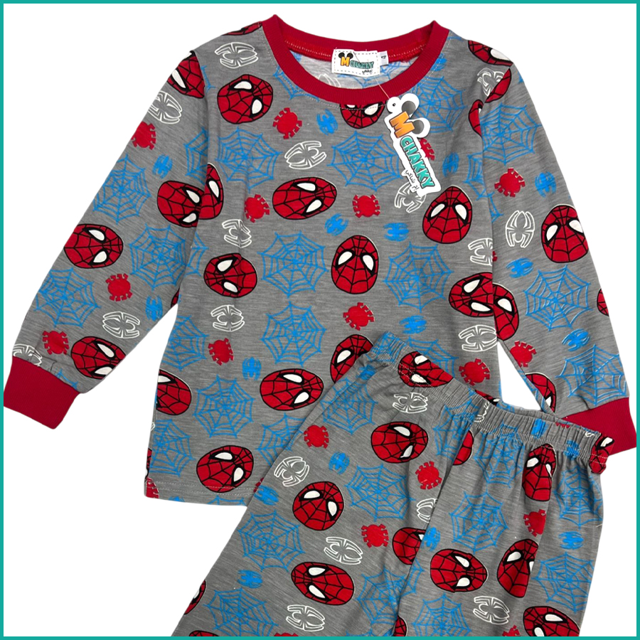 Spiderman Mask Boys Cotton Full Sleeves Pajama Set – Grey