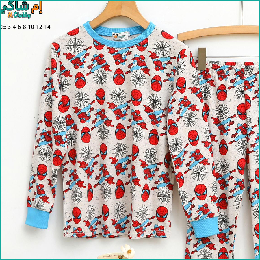 Spiderman Mask Boys Cotton Full Sleeves Pajama Set – Grey