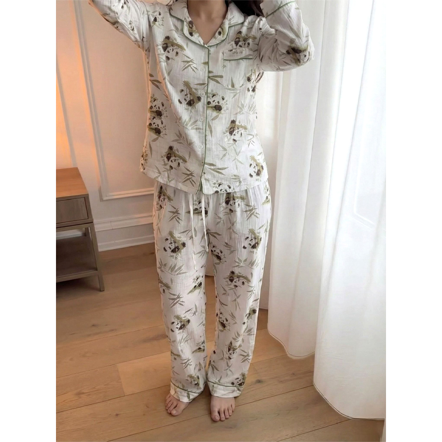 Stem Panda Ladies Front Open Pajama Set – White