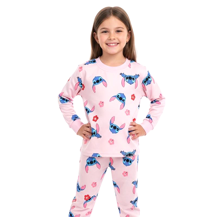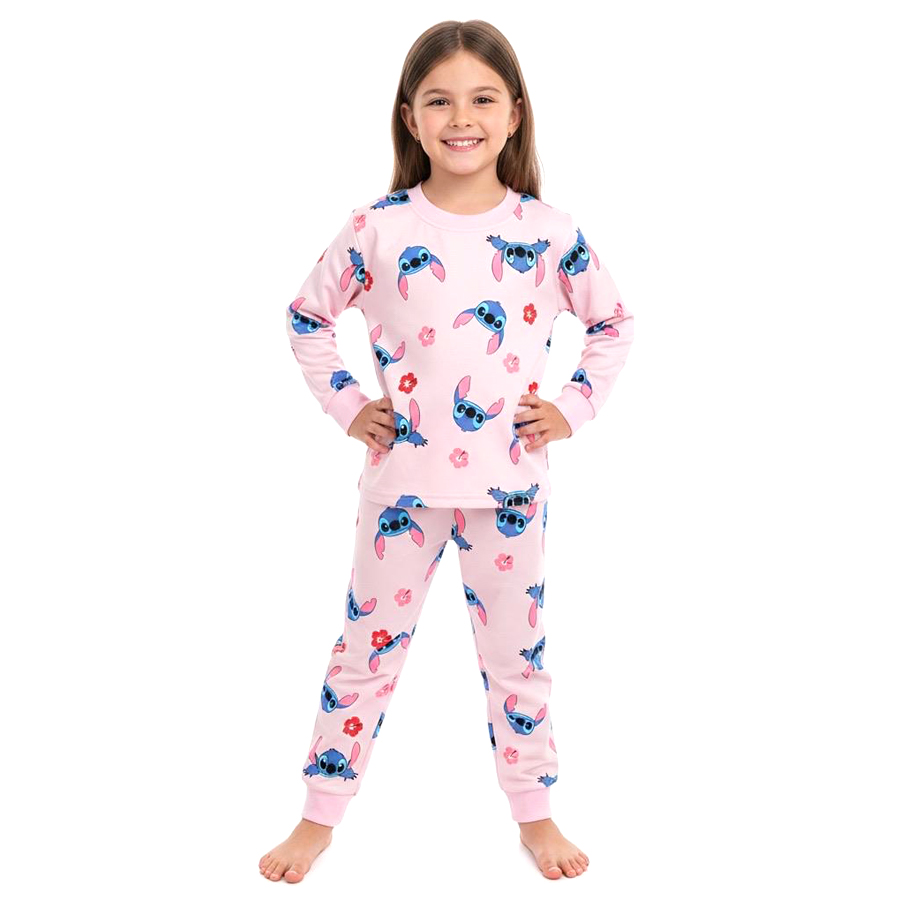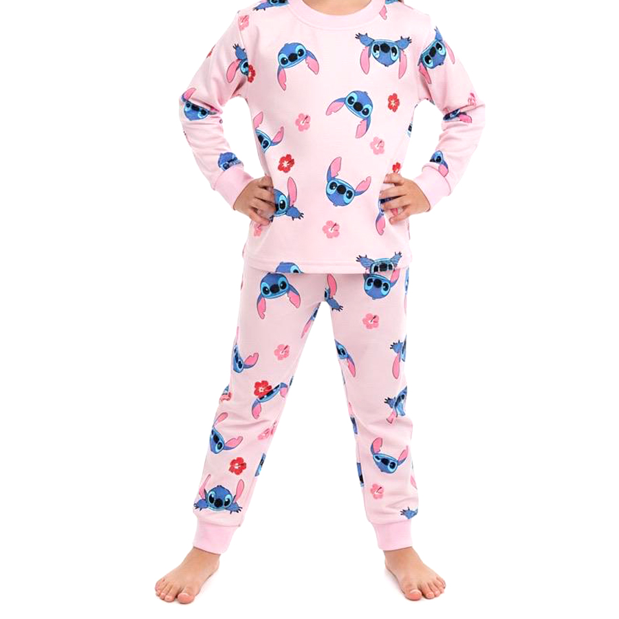 Stitch Face Floral Girls Winter Pajama Set – Pinkبجايم مبتن من داخل