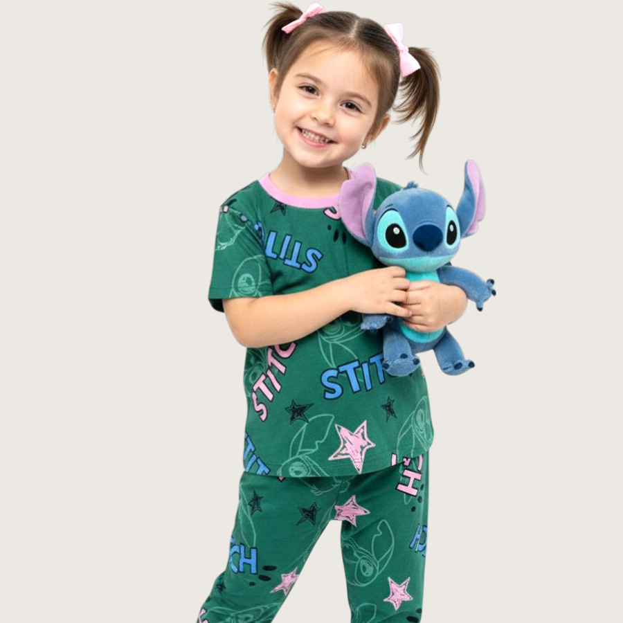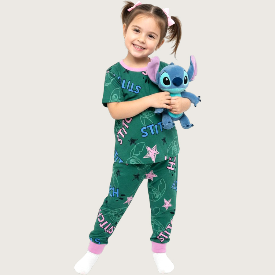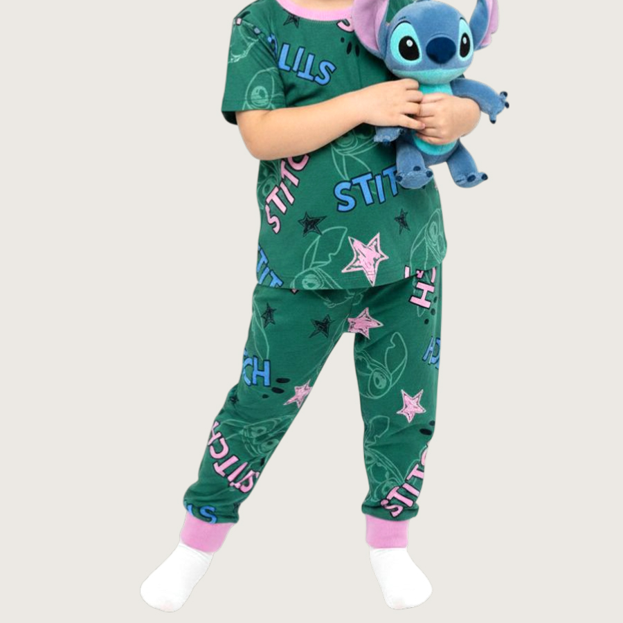 Stitch Girls Cotton Half Sleeves Pajama Set – Dark Green