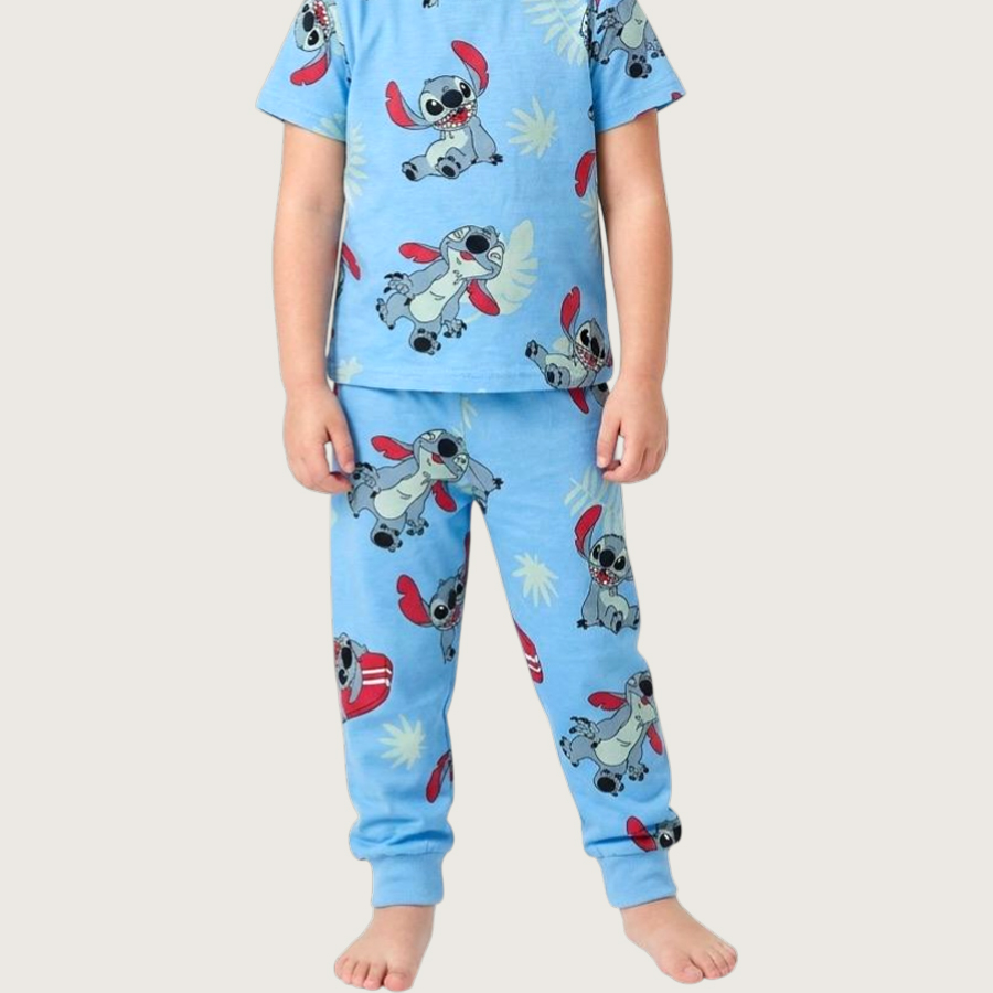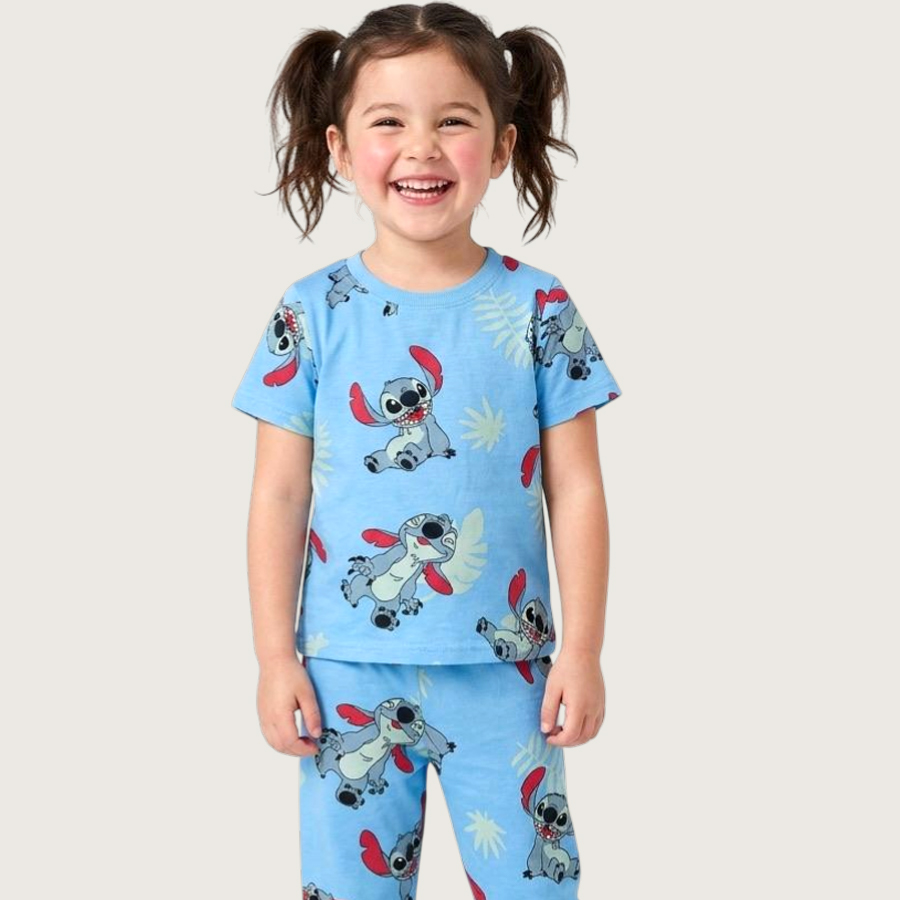 Stitch Girls Cotton Half Sleeves Pajama Set – Sky Blue