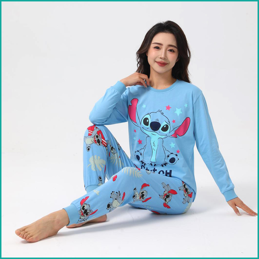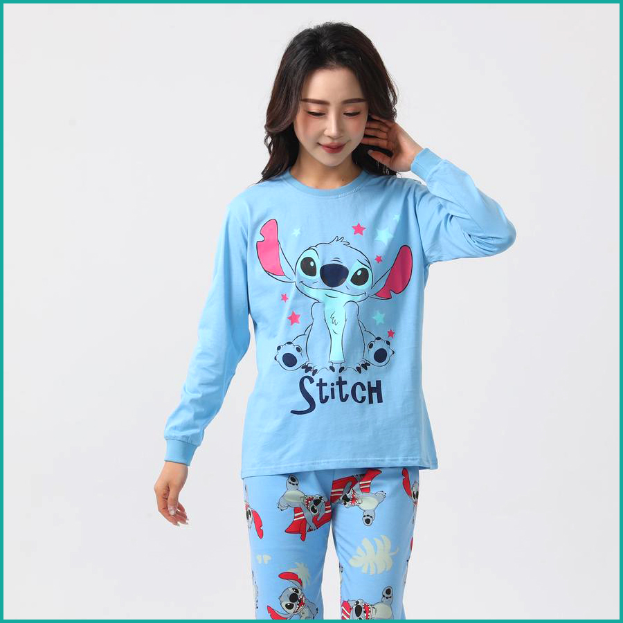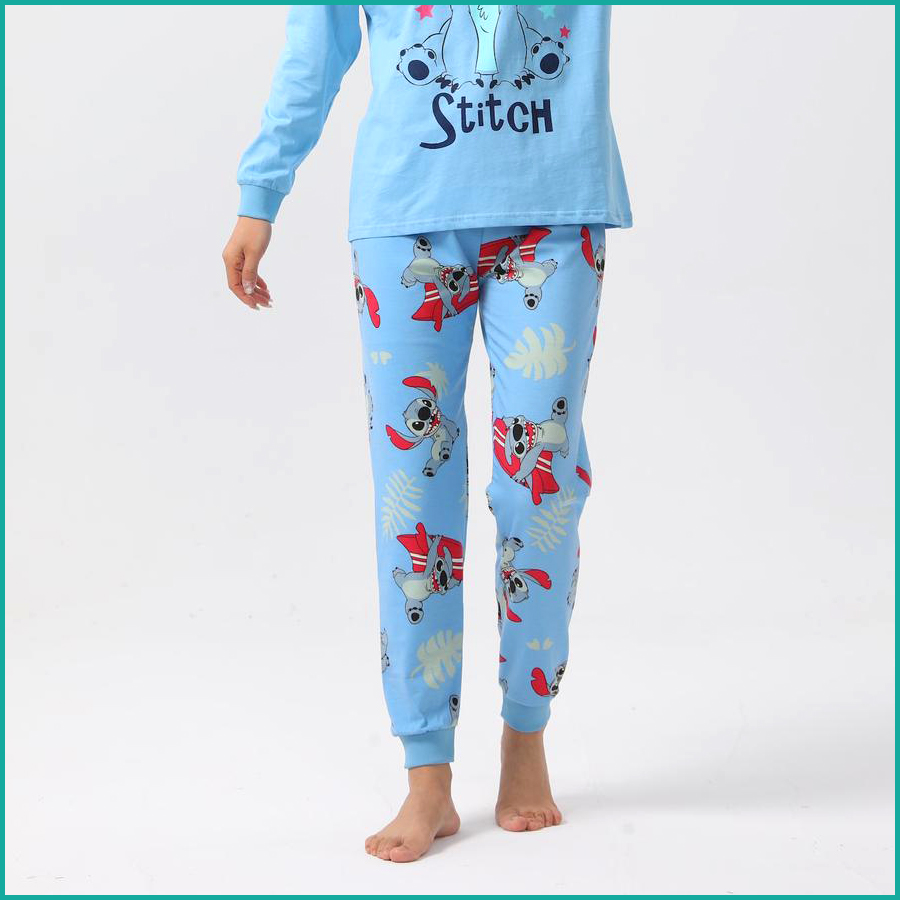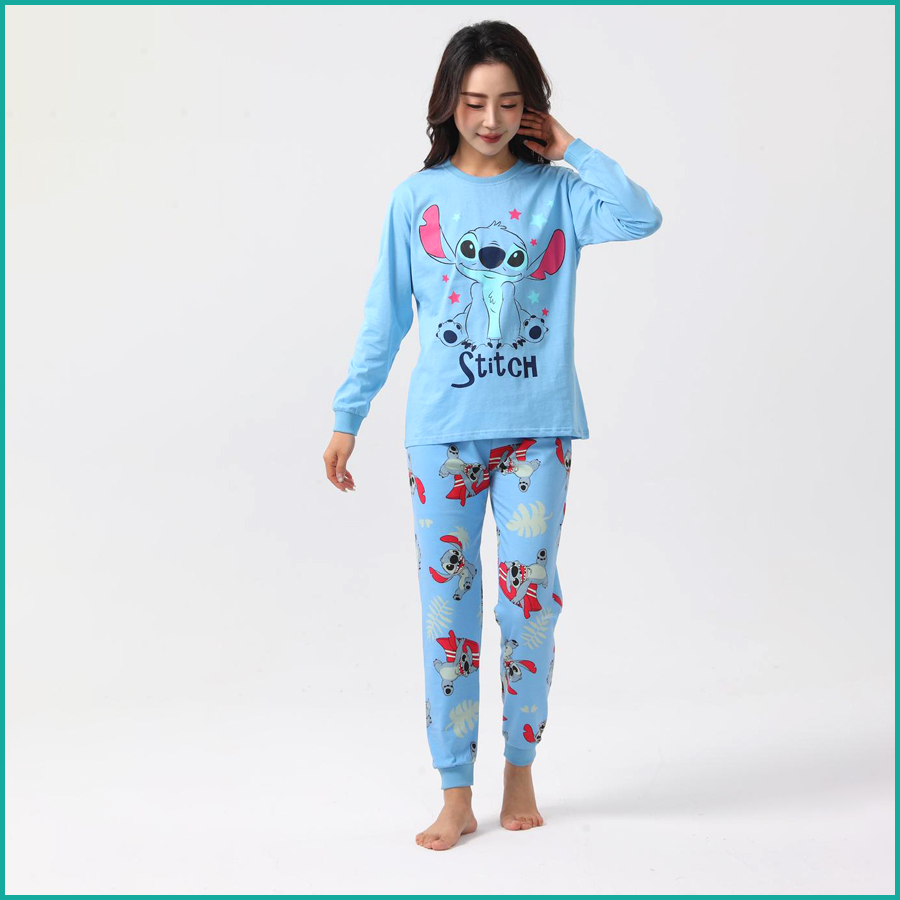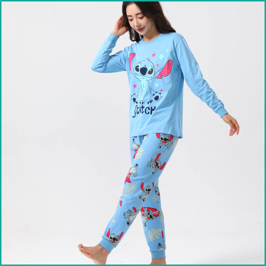 Stitch Ladies Full Sleeves Cotton Pajama Set – Sky Blue