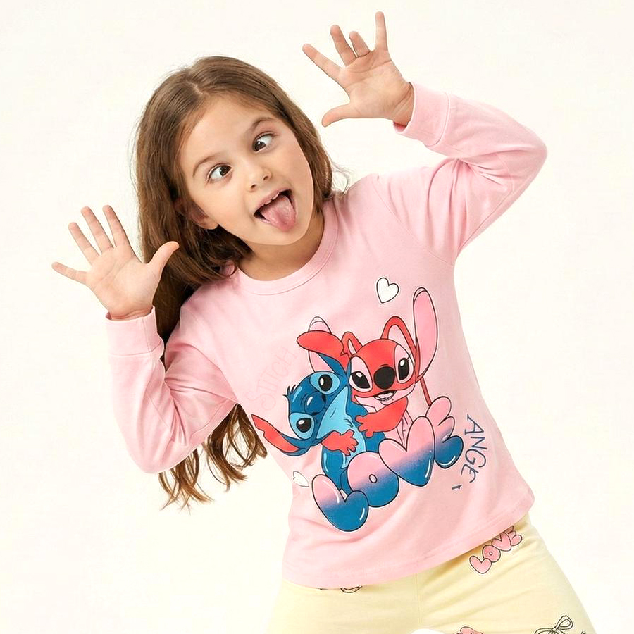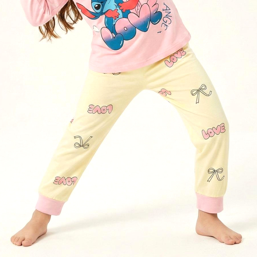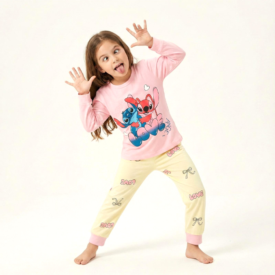Stitch Love Girls Full Sleeves Cotton Pajama Set – Pink
