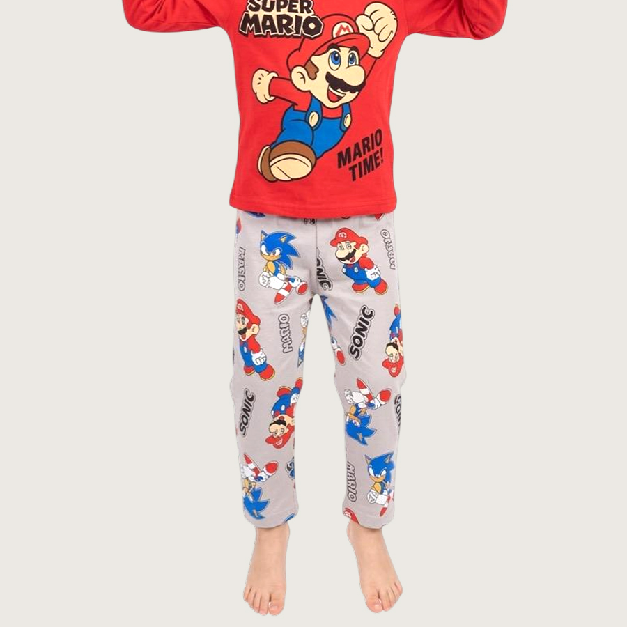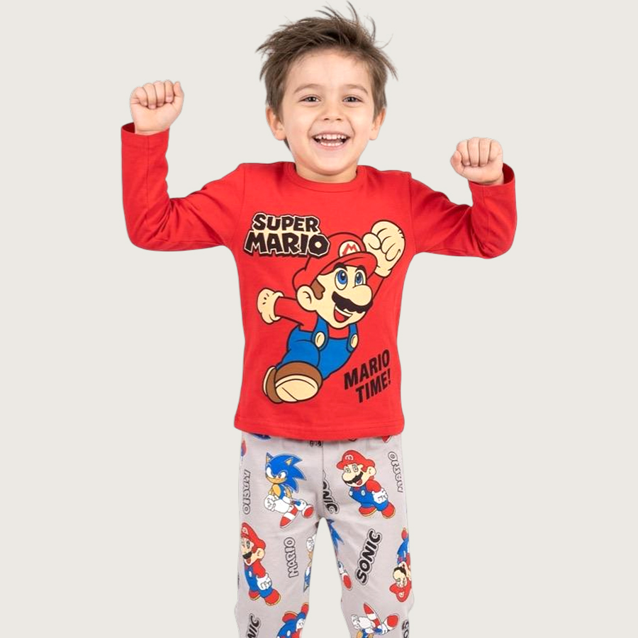 Super Mario Boys Cotton Pajama Set – Red Grey