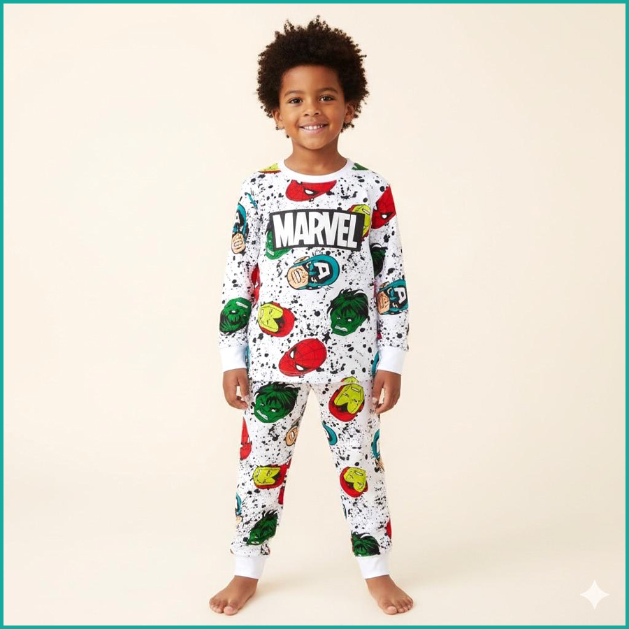 Superhero Face Boys Full Sleeves Pajama Set PRIMARK – White