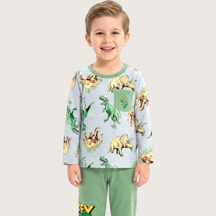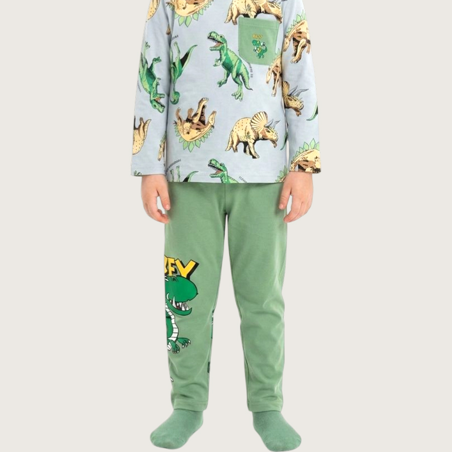 T-Rex Boys Full Sleeves Pajama Set KHAFIF – Grey Green