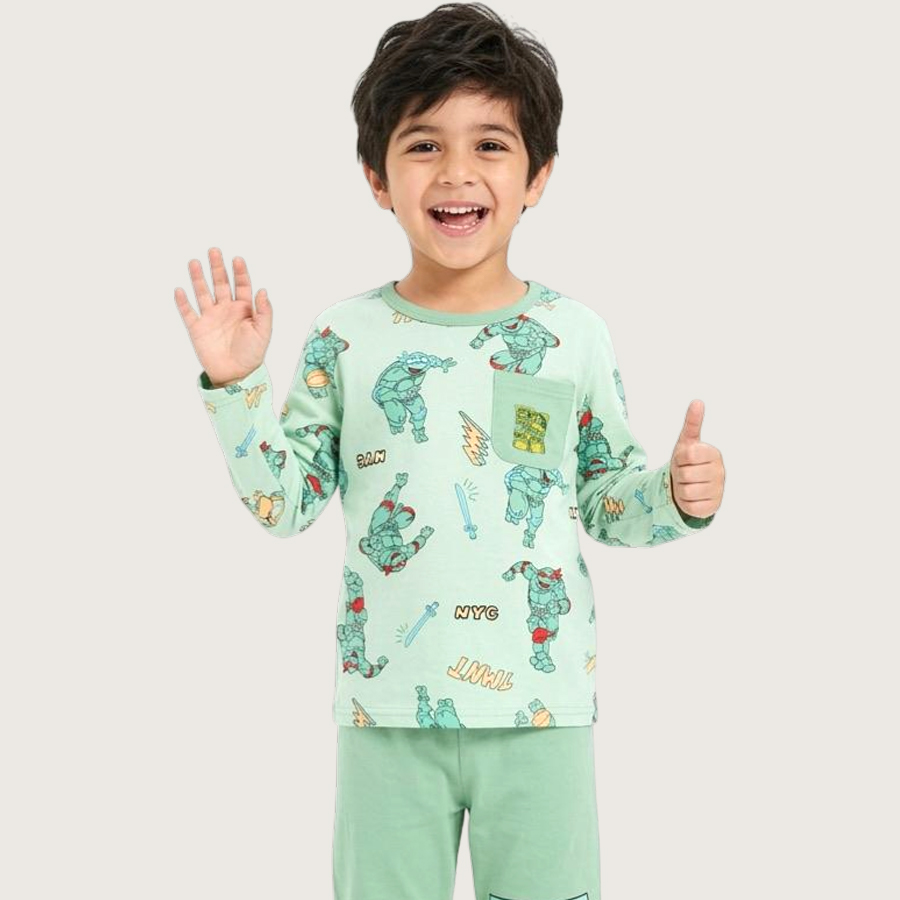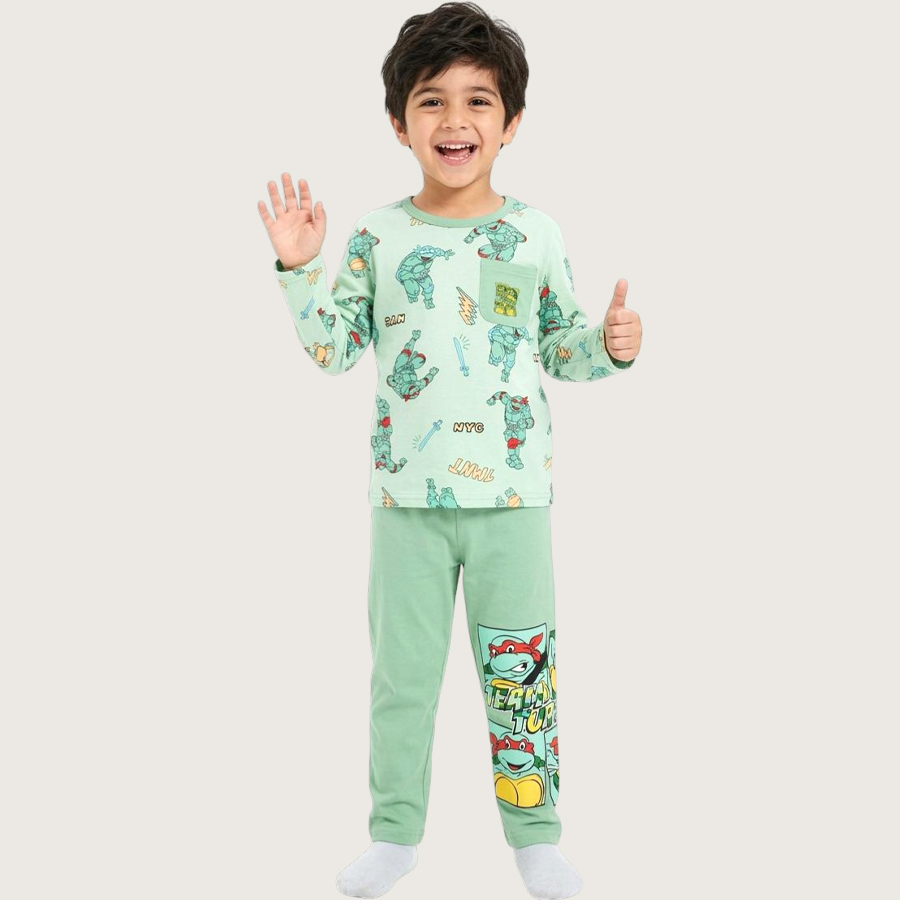Team Turtle Boys Cotton Pajama Set – Green