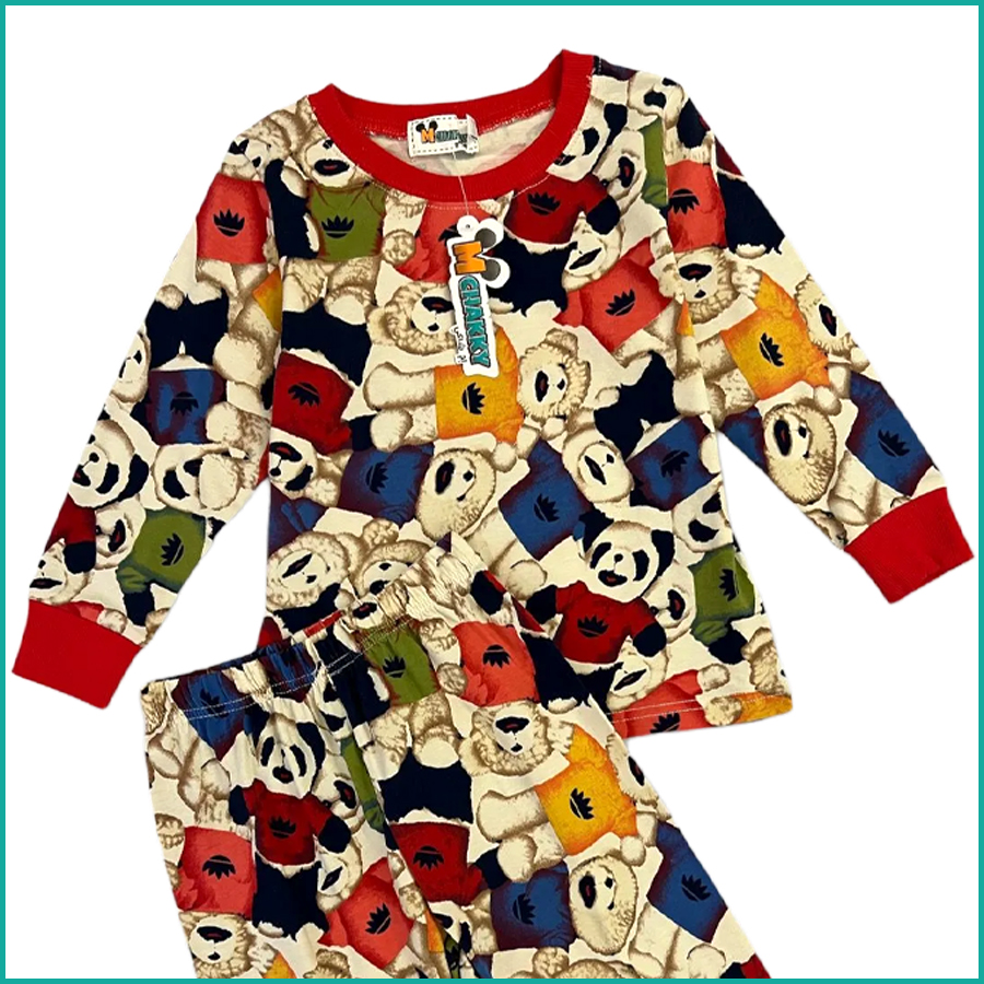 Teddy Girls Full Sleeves Cotton Pajama Set – Multicolor