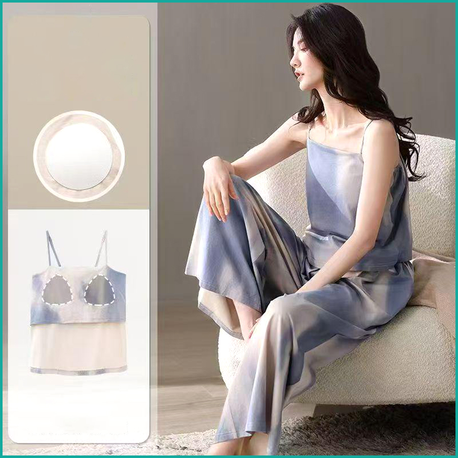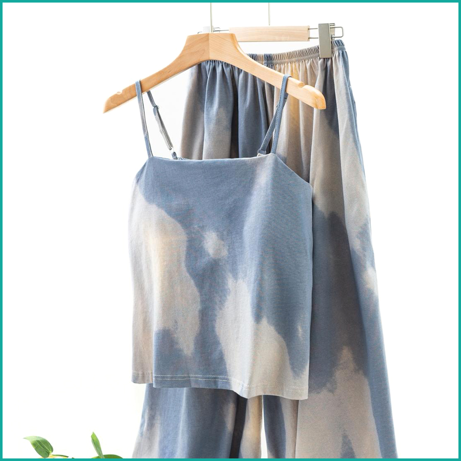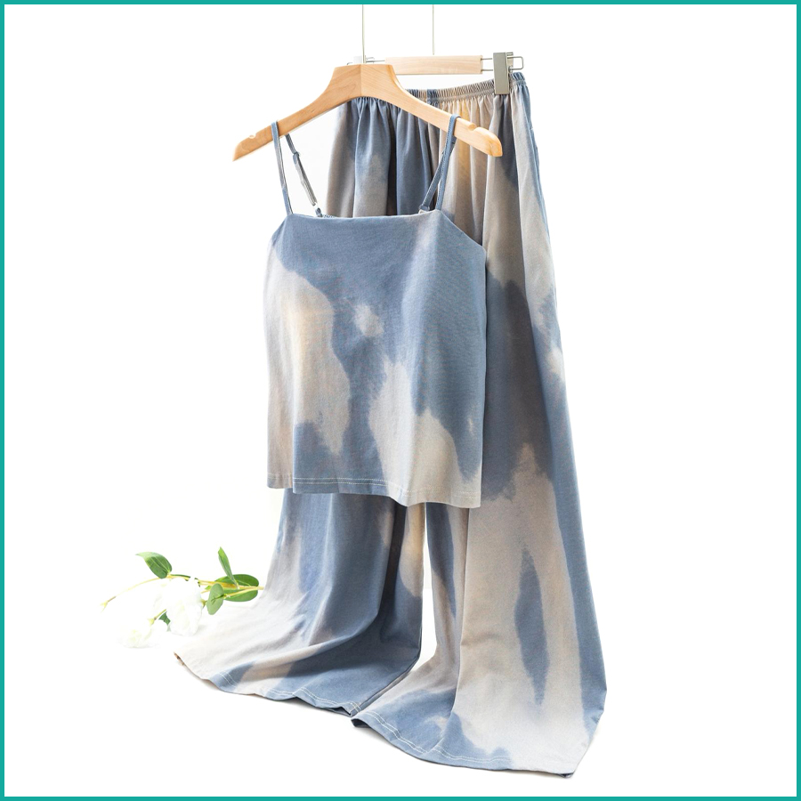 Tie-Dye lounge Set built-in Padded Camisole and Flowy Wide-Leg Pant – Blue