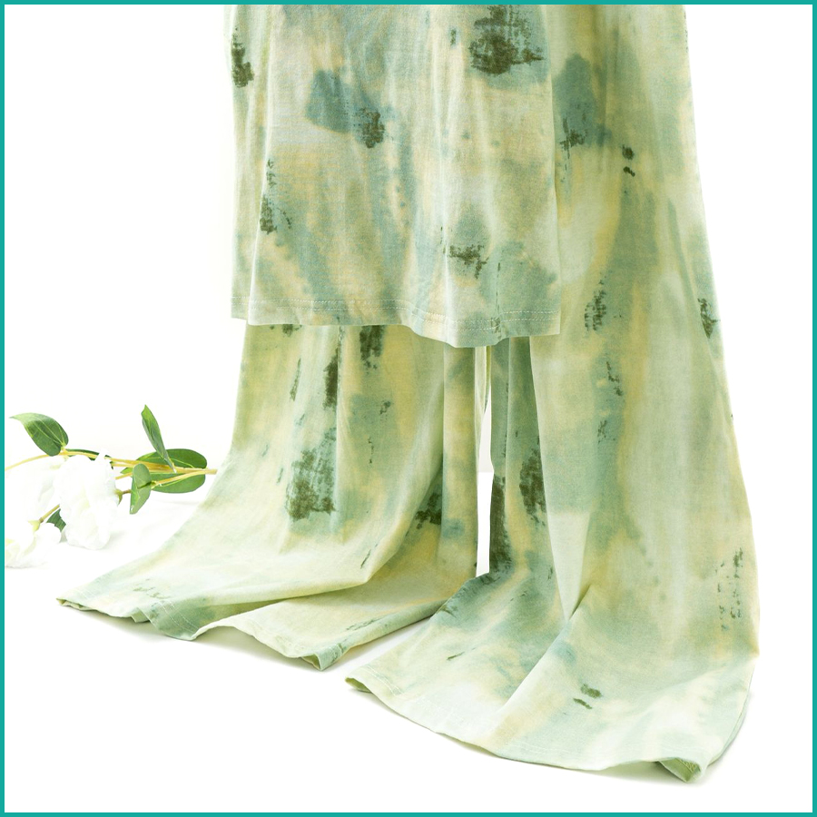 Tie-Dye lounge Set built-in Padded Camisole and Flowy Wide-Leg Pant - Light Green