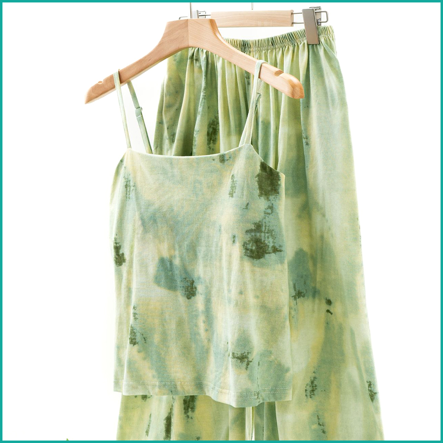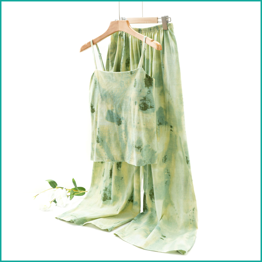 Tie-Dye lounge Set built-in Padded Camisole and Flowy Wide-Leg Pant – Green