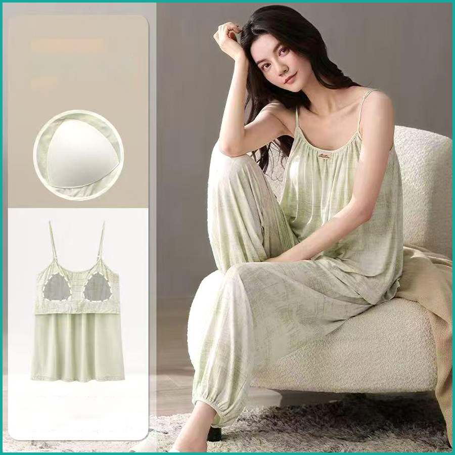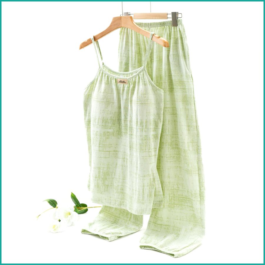 Tie-Dye lounge Set built-in Padded Camisole and Flowy Wide-Leg Pant – Light Green