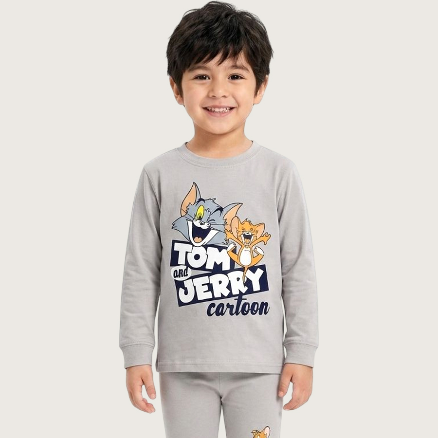 To & Jerry Boys Full Sleeves Pajama Set KHAFIF – Grey