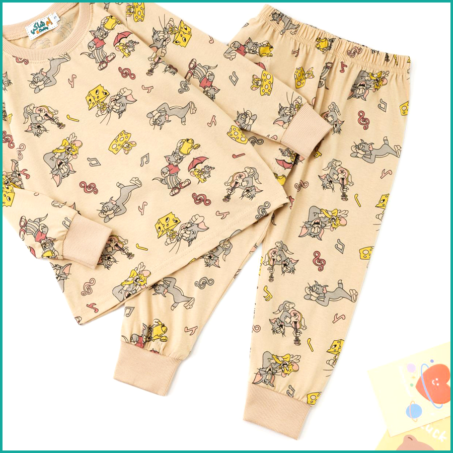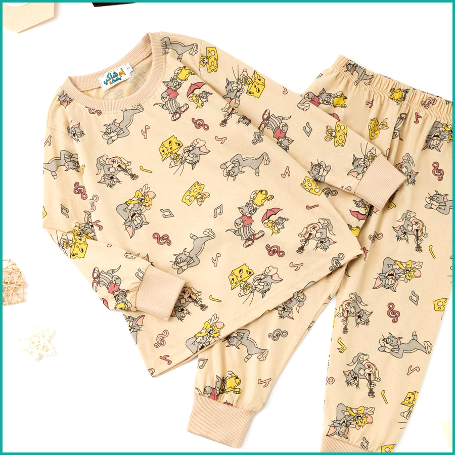 Tom & Jerry Boys Full Sleeves Pajama Set – Brown