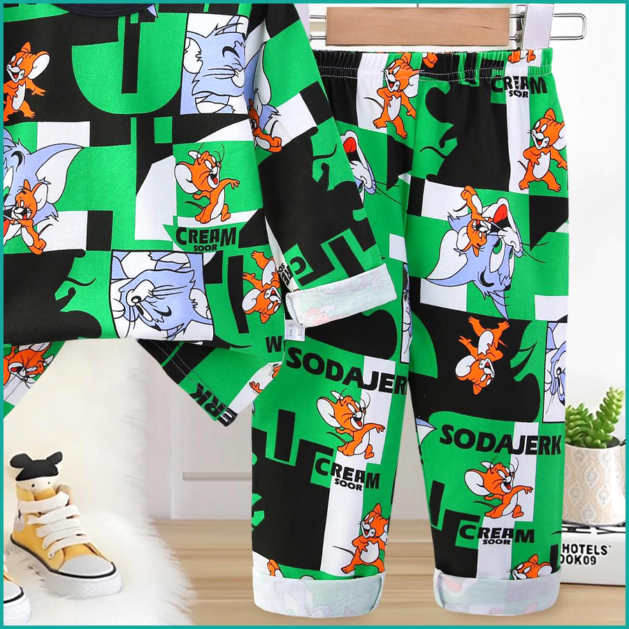 Tom Jerry Cream Boys Full Sleeves Pajama Set – Black