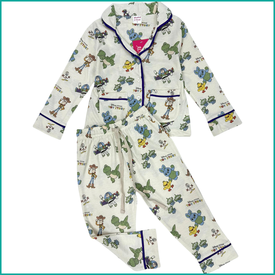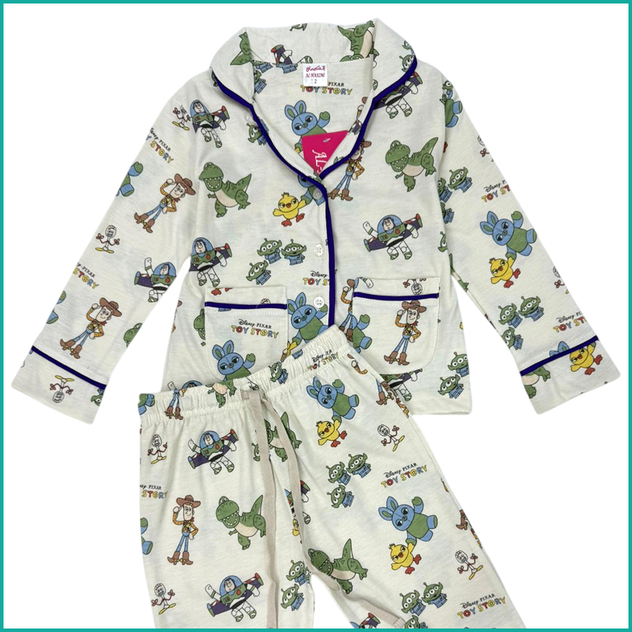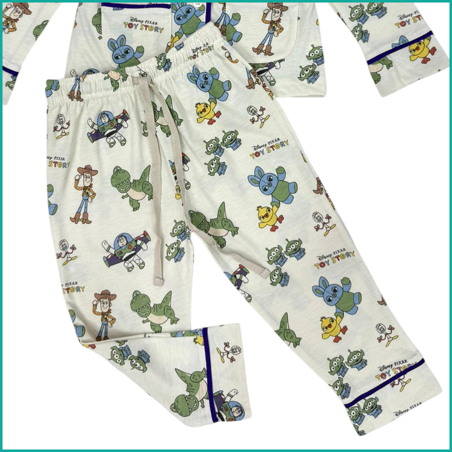 Toy Story Boys Front Open Full Sleeves Pajama Set – White