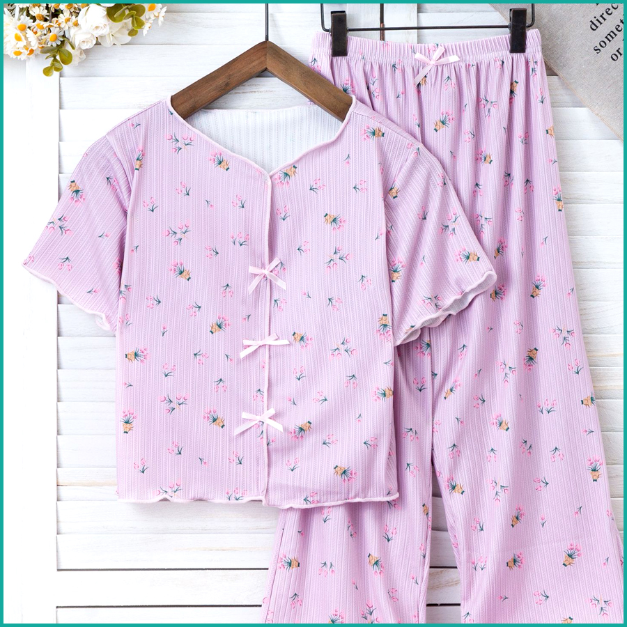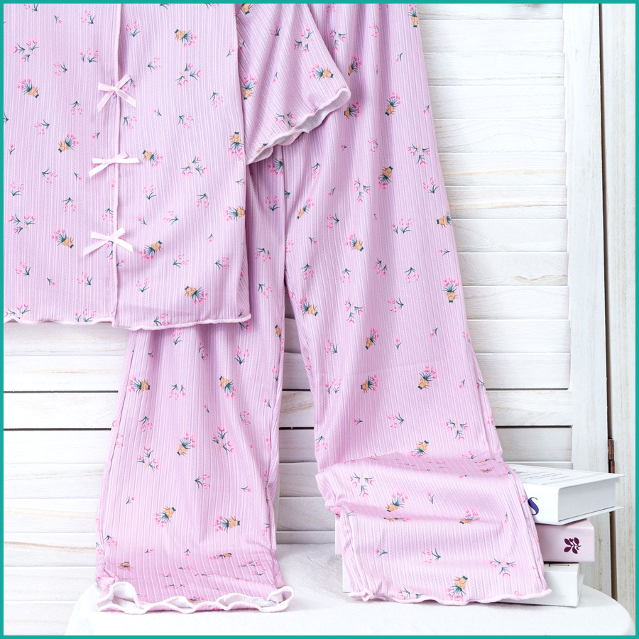 Tulips Ladies Crop T-Shirt Loungewear Pajama Set – Pink