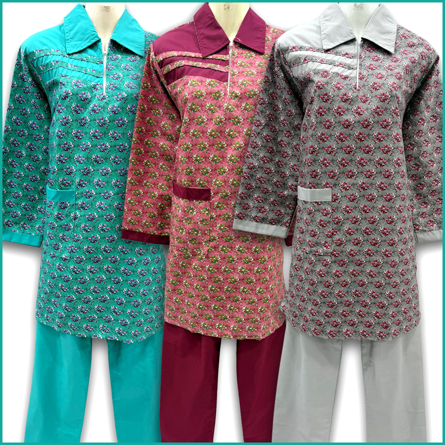 Plain Uniform Maids Panjabi TETRON Material (TC Material) - Navy Pink Green Blue