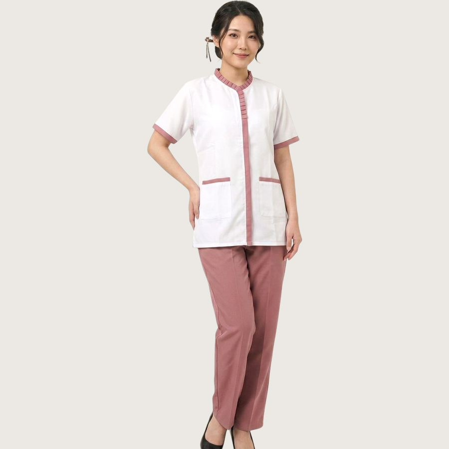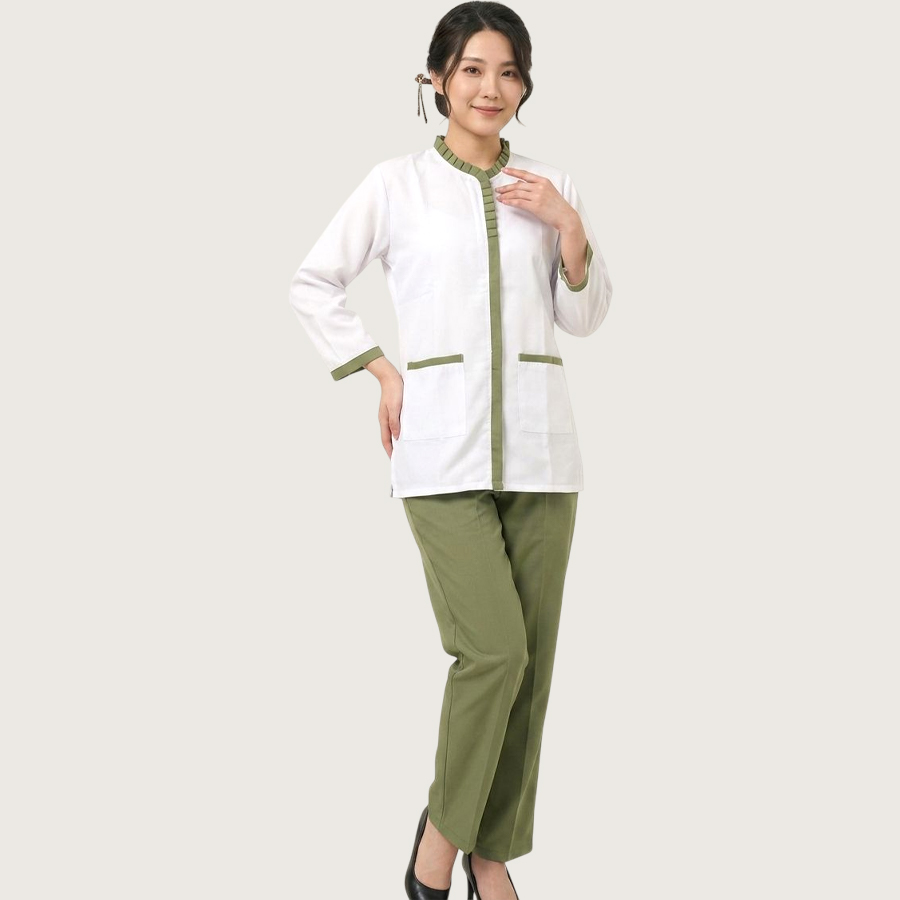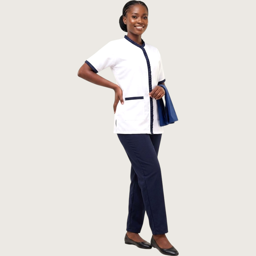 White Top Uniforms Maid Kreb Qasir يونيفورم كريب – Blue Pink Green