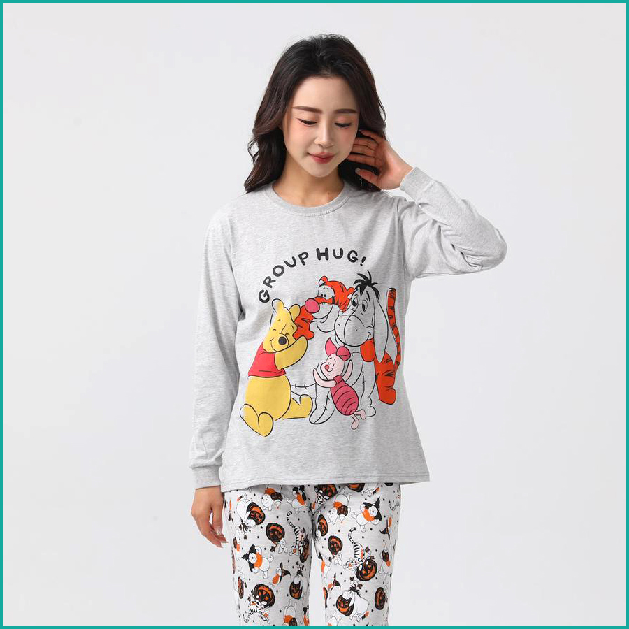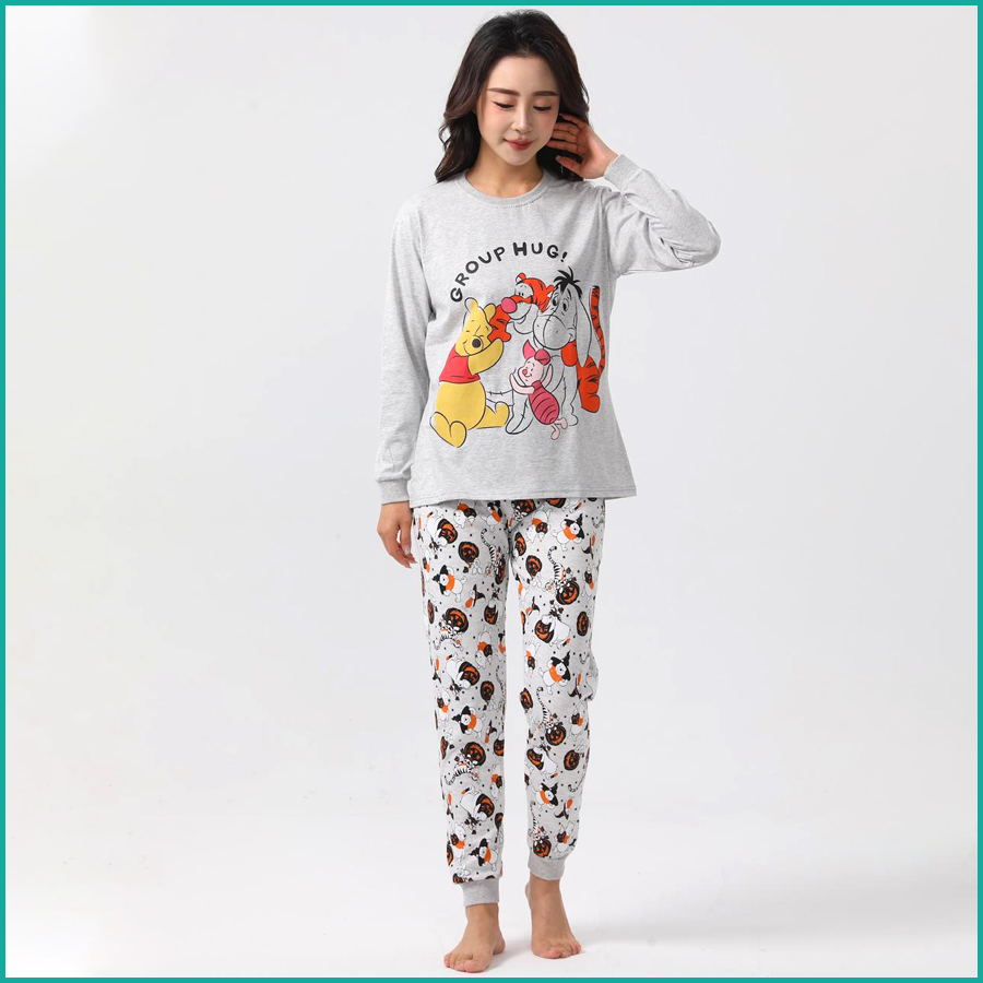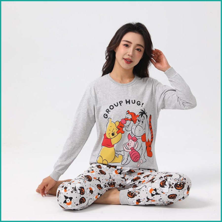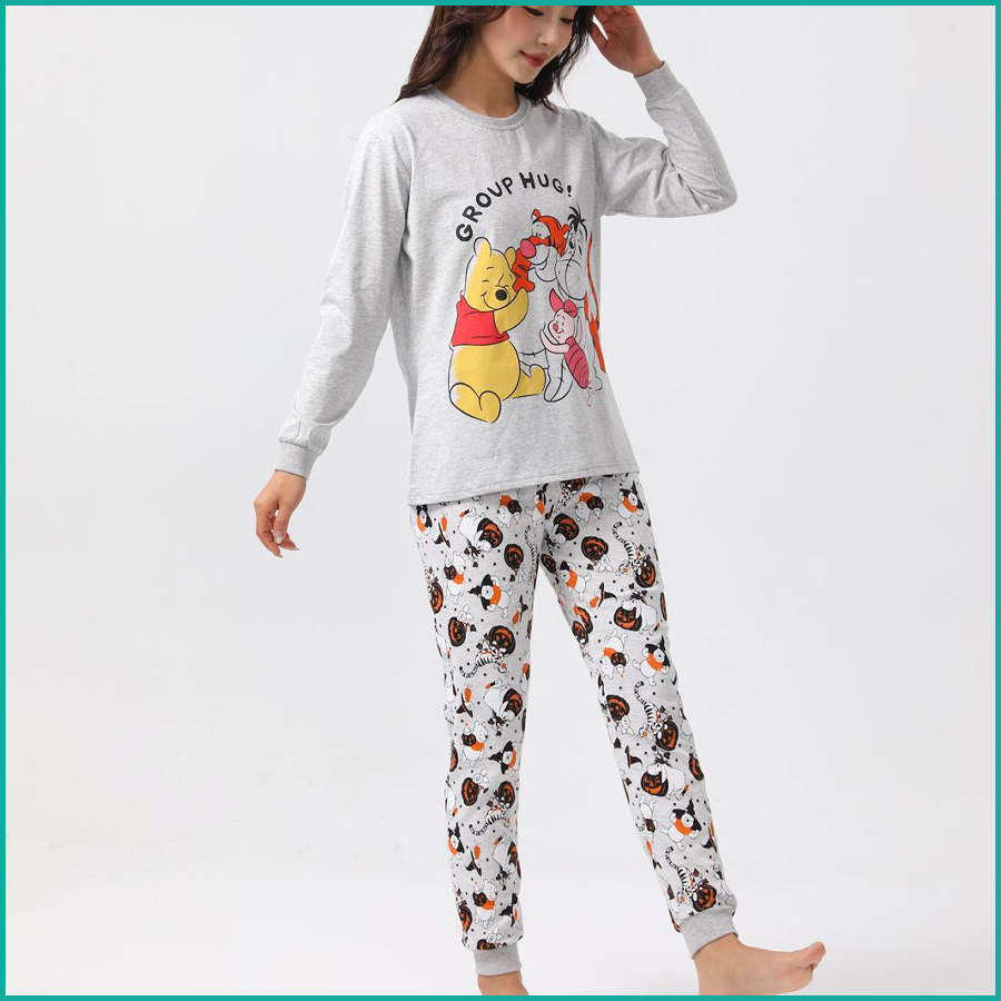 Winnie the Pooh Ladies Full Sleeves Cotton Pajama Set - Yellow